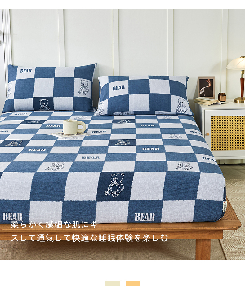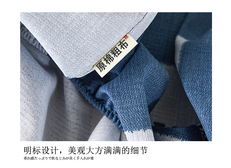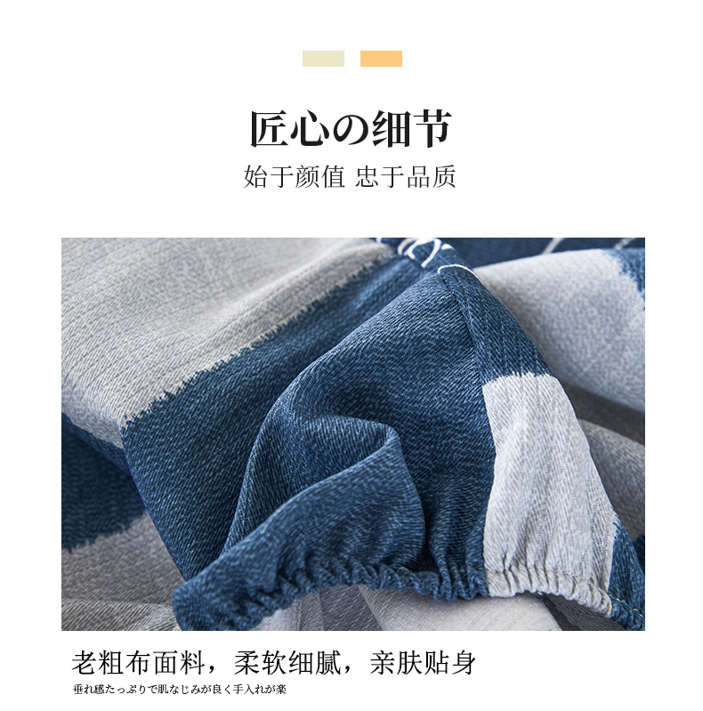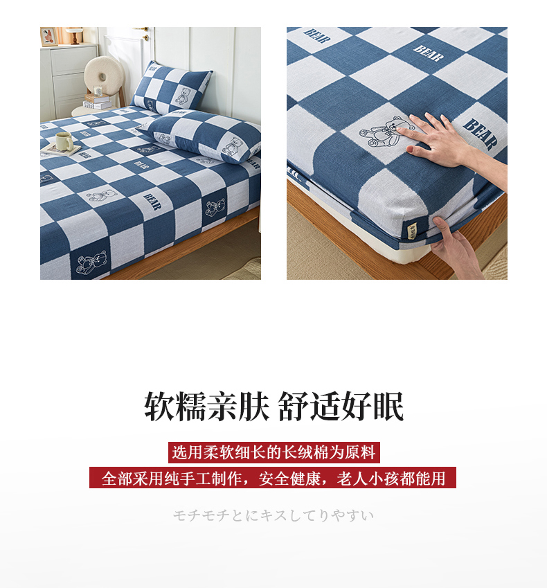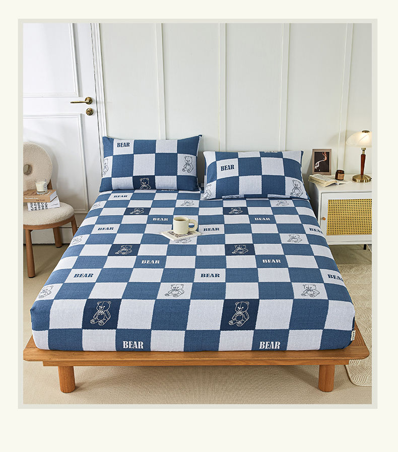 九沐良品 新款全棉无印老粗布单品床笠+三件套 巴比熊(兰)