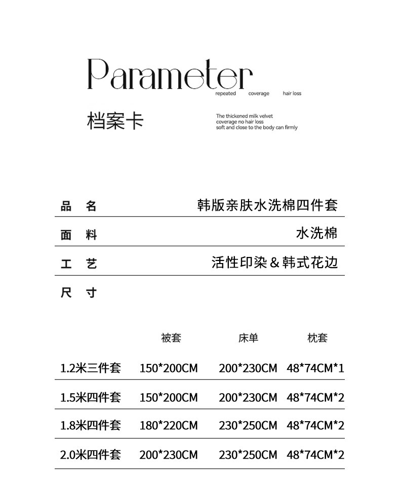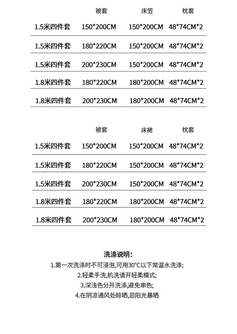 150*200床笠款四件套(被套200*230cm) | ¥70.00 |