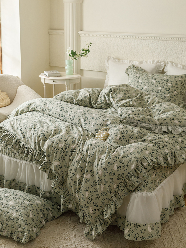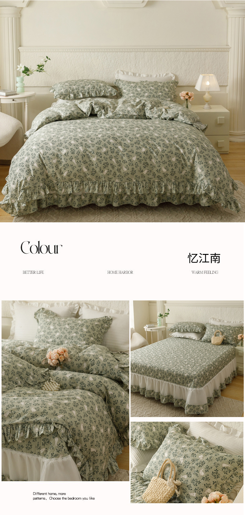 (总)菊上家纺 2023秋冬新品法式花边全棉床盖四件套,安妮紫,花千骨,小欢喜,布拉格,罗蔓莉,玛雅灰,小幸运,卡町绿,恋花影,薇薇安