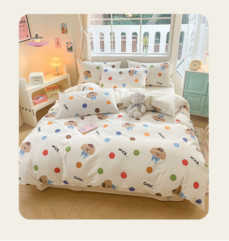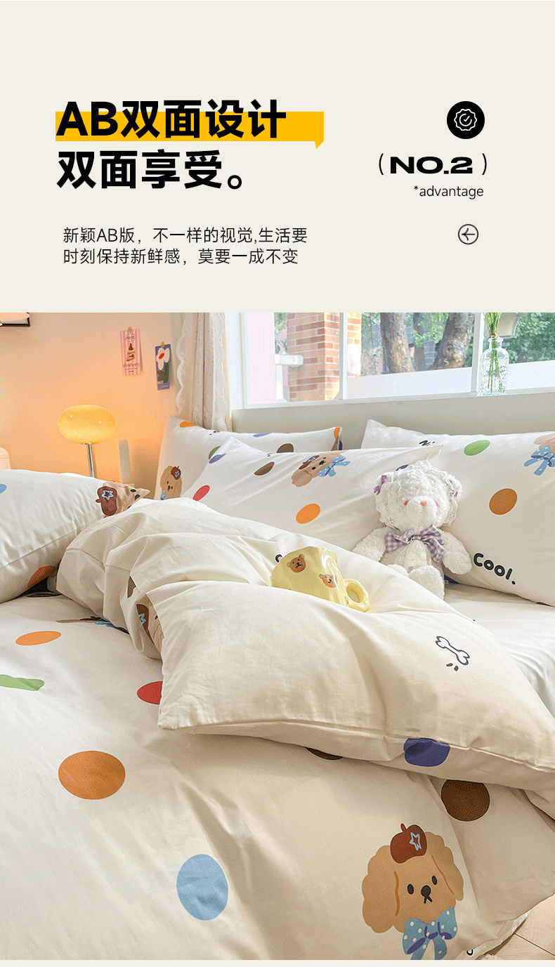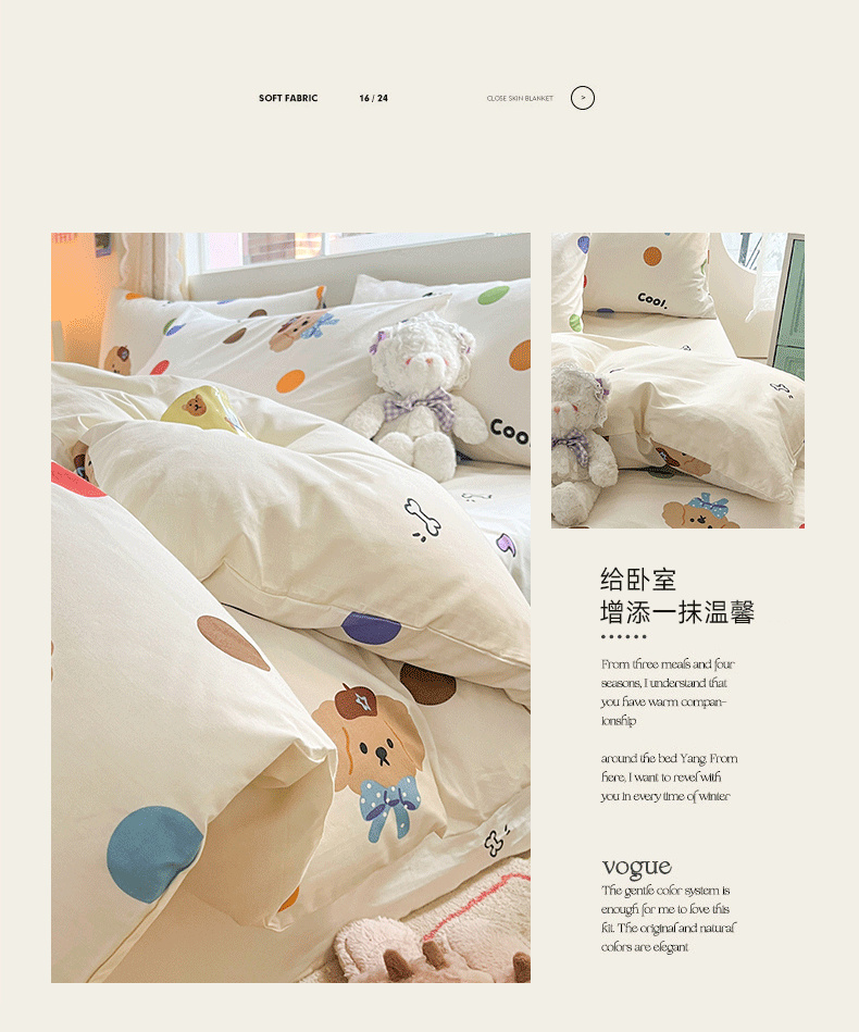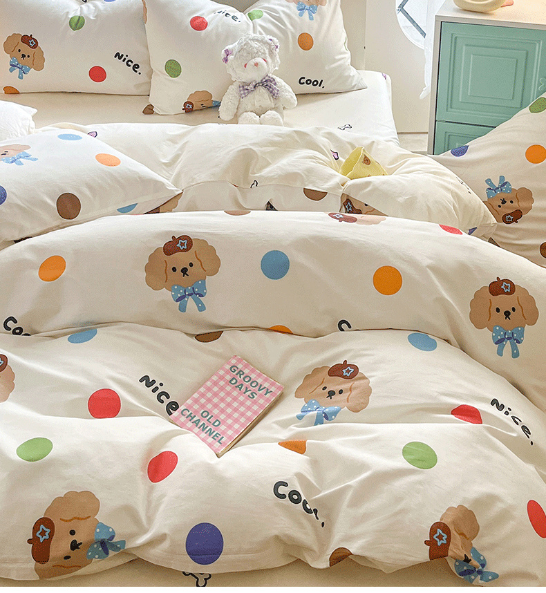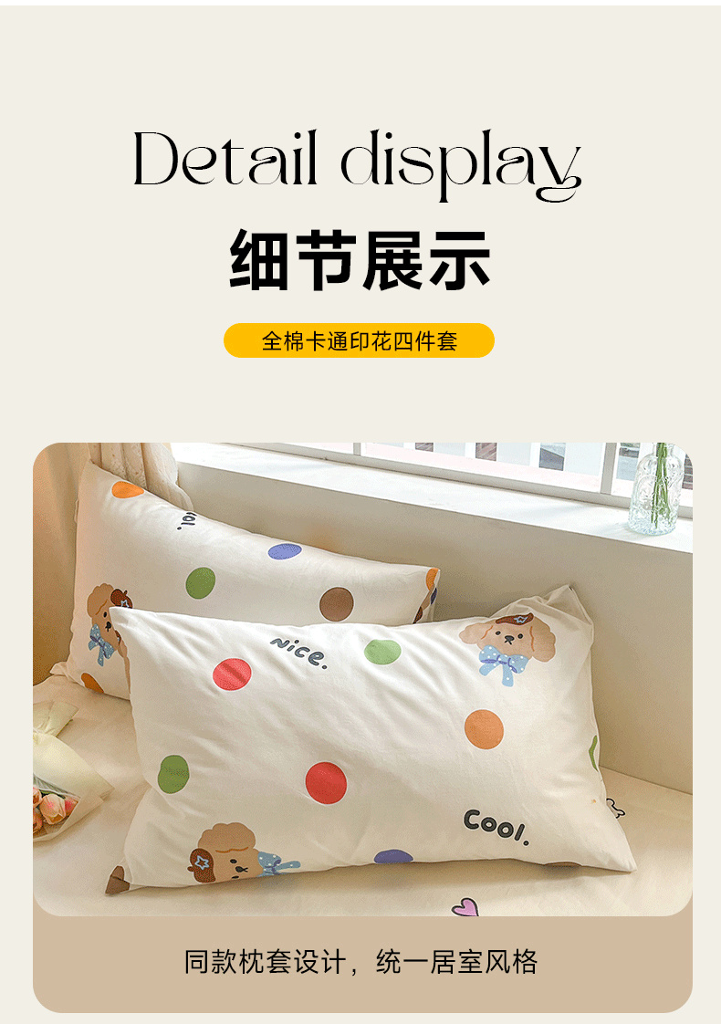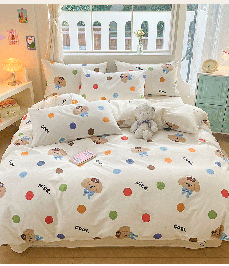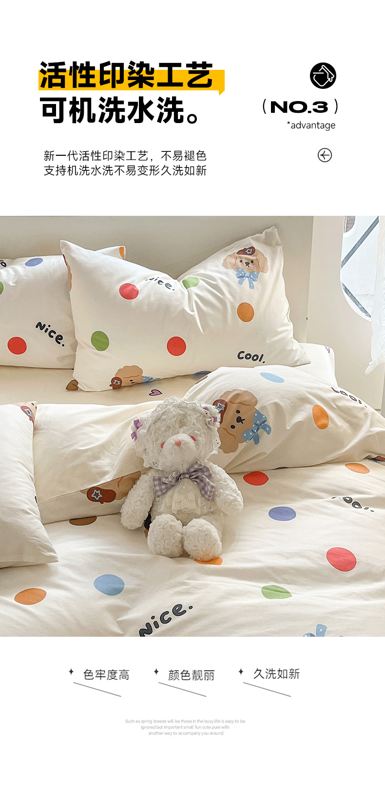 当前位置: 91家纺网 > 商品网购 > 床品套件 > 四件套 > 全棉普通四件套 > 川悦生活 2024爆款13372全棉卡通小清新四件套三件套 炫彩狗狗