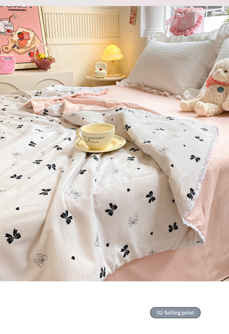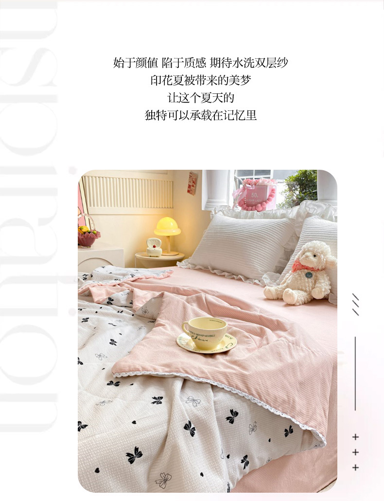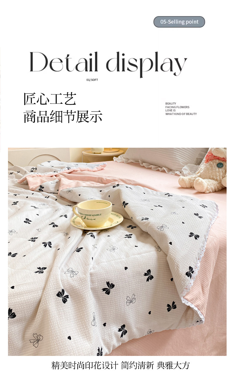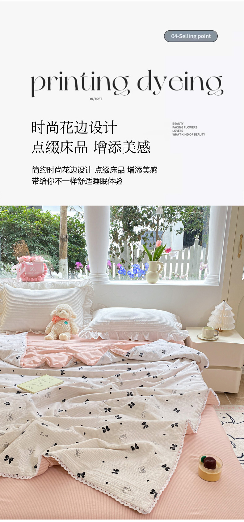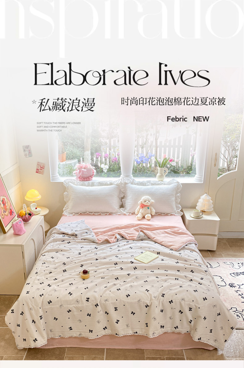 商品名称:慕澄家纺 2024新款时尚印花泡泡棉花边夏被夏凉被空调被 夏被-蝴蝶结