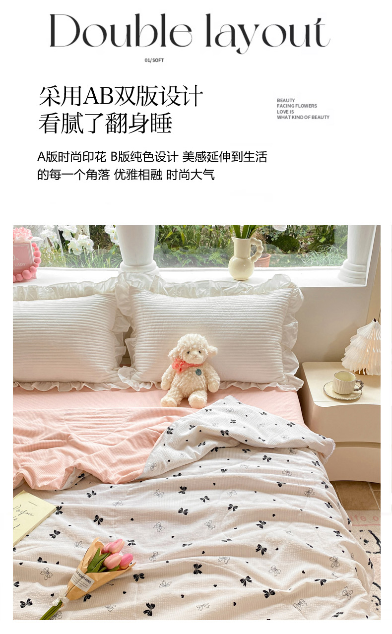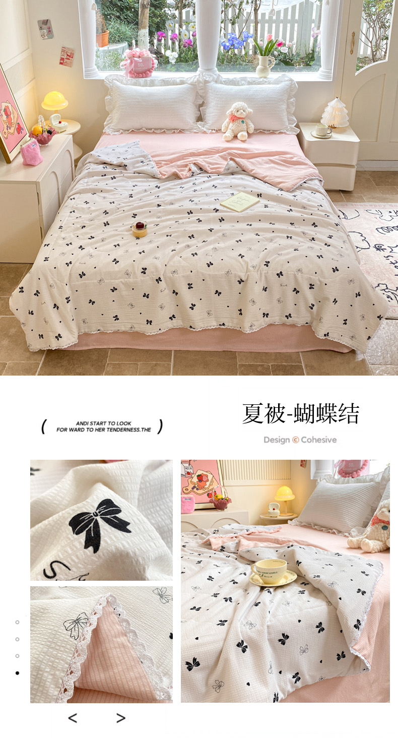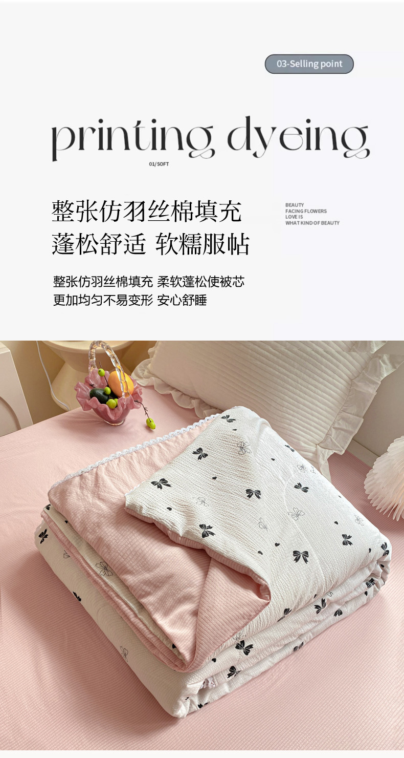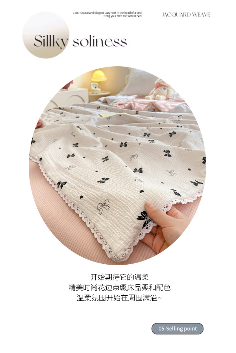 商品名称:慕澄家纺 2024新款时尚印花泡泡棉花边夏被夏凉被空调被 夏被-蝴蝶结
