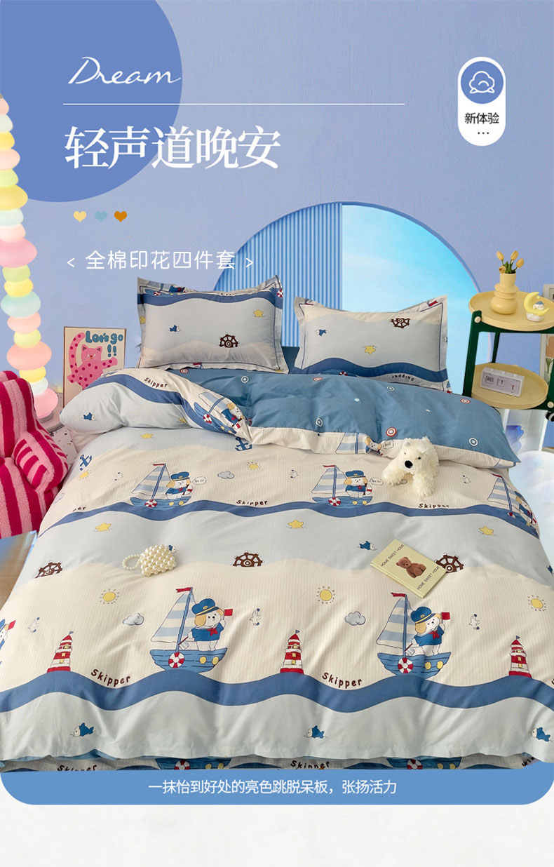 云锦家居 2024新款13070纯棉印花吊边款一字绣四件套 星夜号