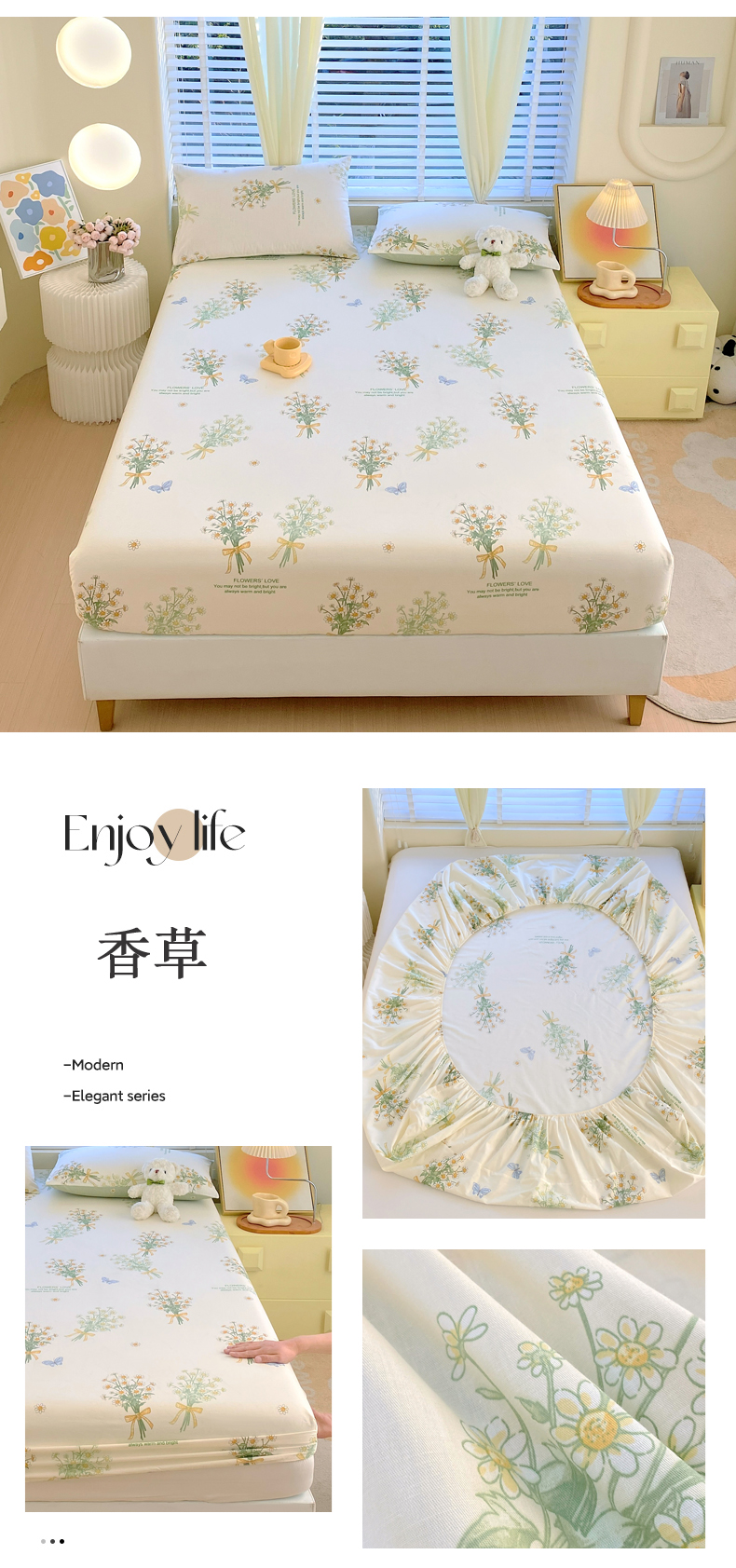 洺兰家居 2025新款全棉喷气印花单床笠纯棉小清新花卉北欧风床套/枕套 香草
