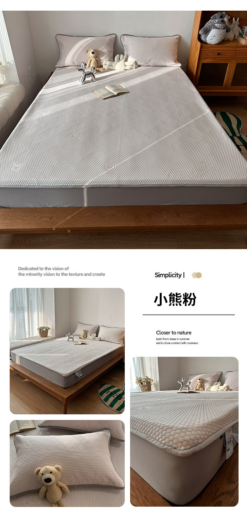 商品名称:千朵 2024新款床笠款3D凉感豆豆凉席 小熊粉