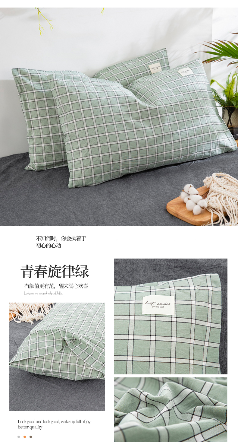 商品名称:大黄蜂家居家纺 2025新款日式纯棉水洗棉信封式枕套 青春旋律绿