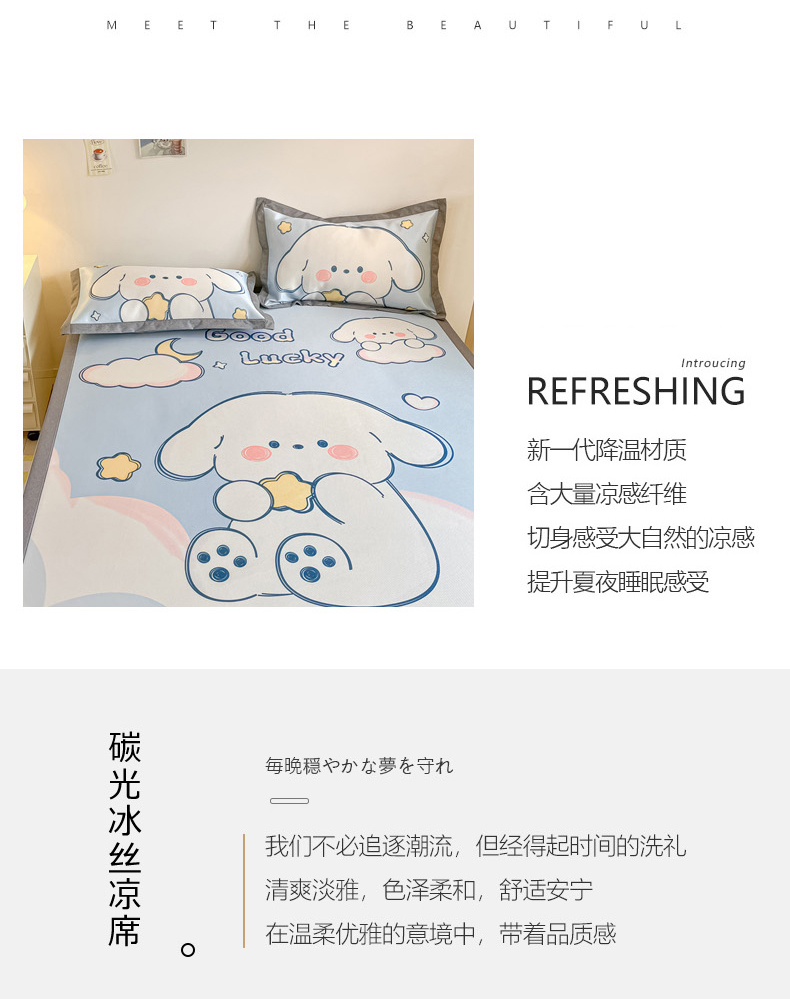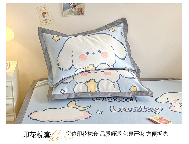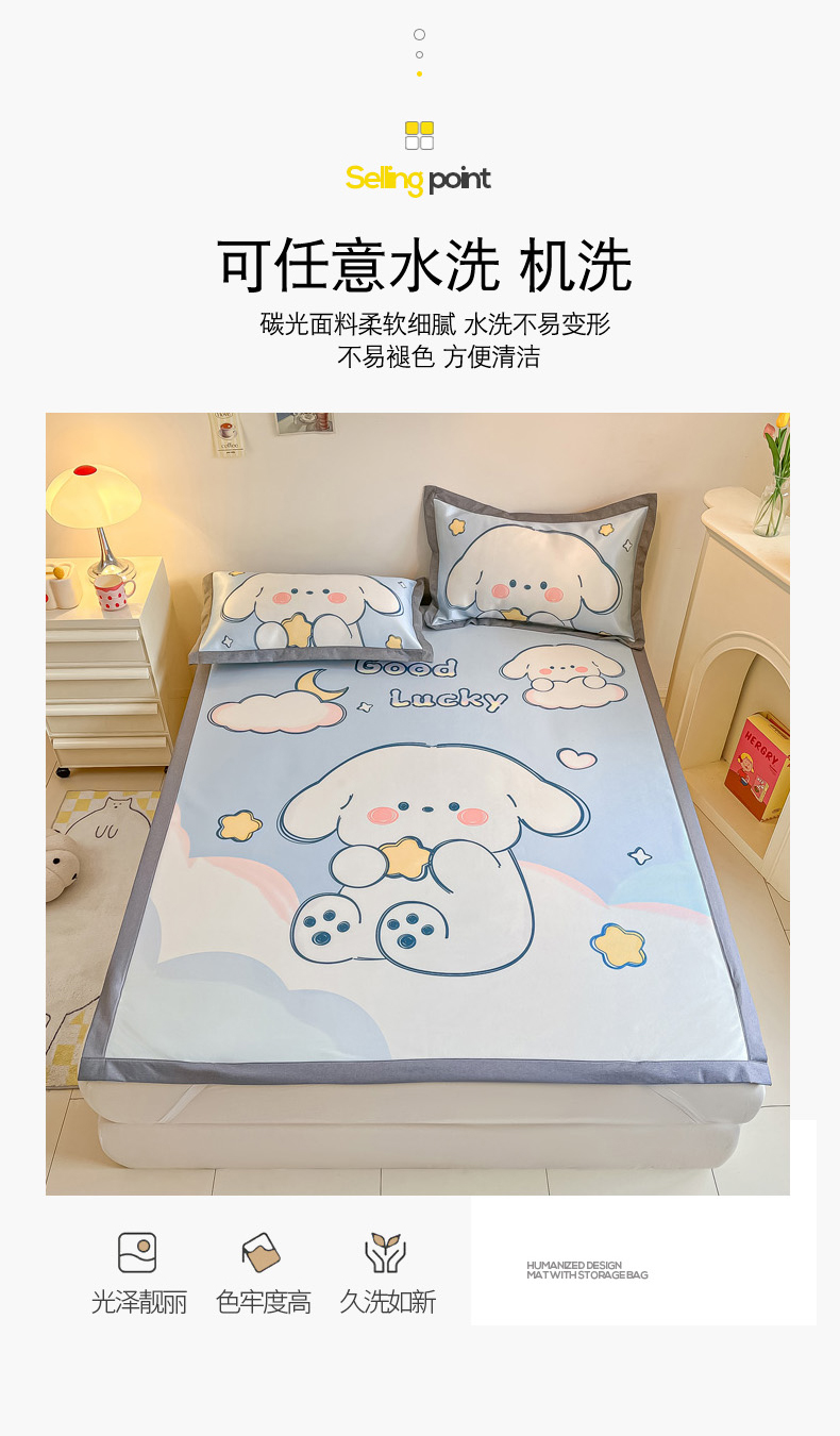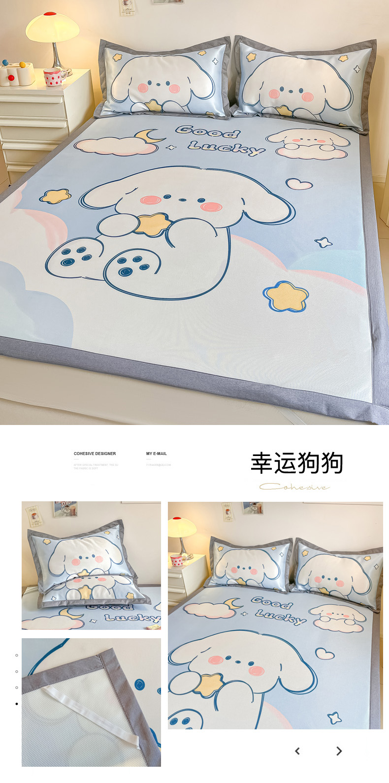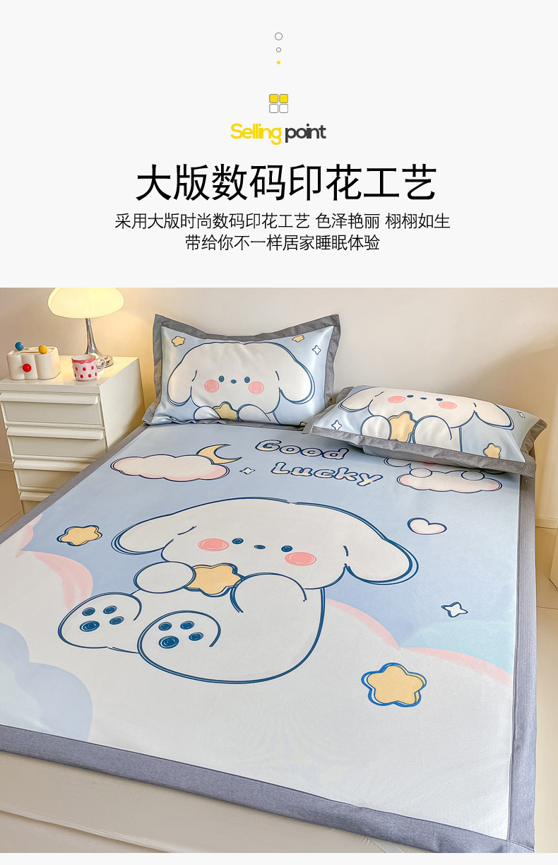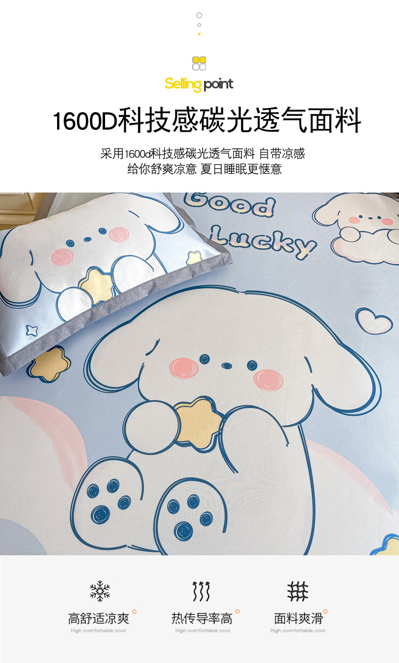 商品名称:柒月 2024新款大版数码印花1600D加厚碳光冰丝席 幸运狗狗