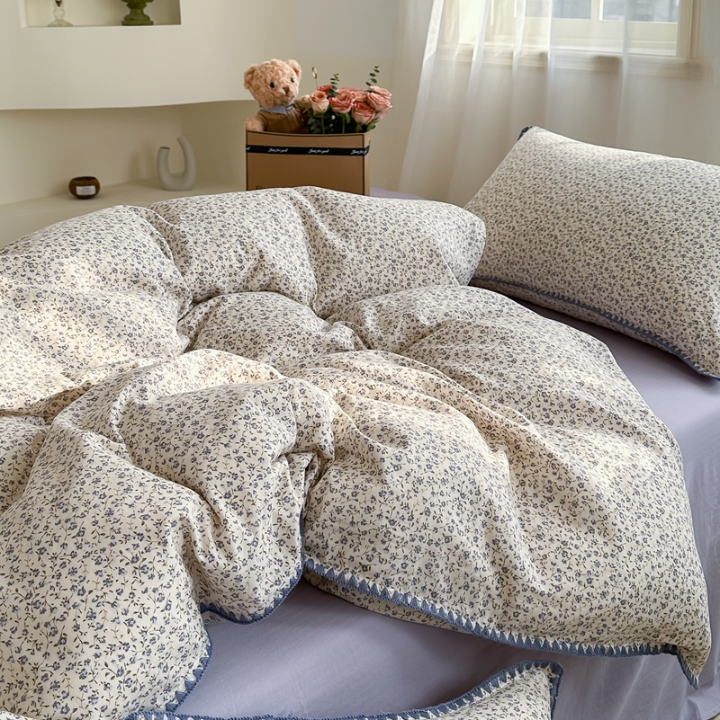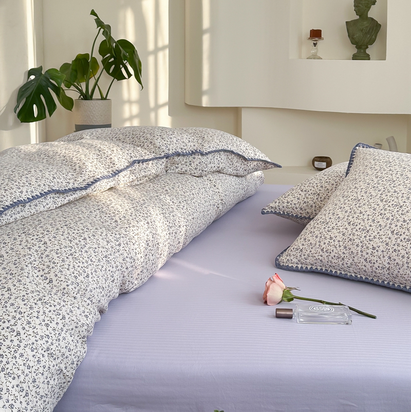 洋铭区(原狠狠爱) 2024新款全棉双层纱四件套 浪漫小蓝花