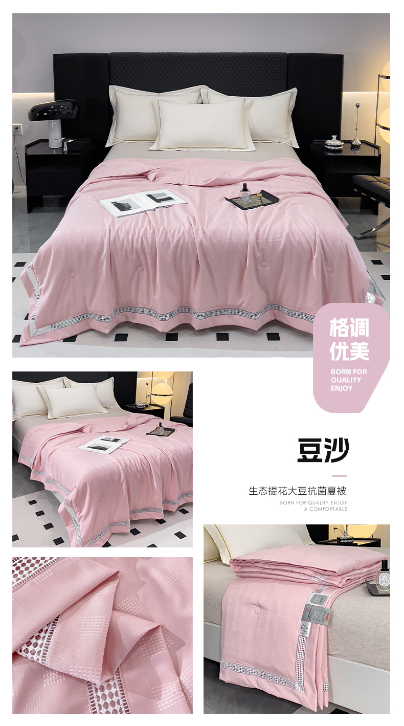 (总)优姿2025新款云柔棉大豆镂空烫钻夏被被子被芯,粉色,灰色,蓝色,绿色,紫色