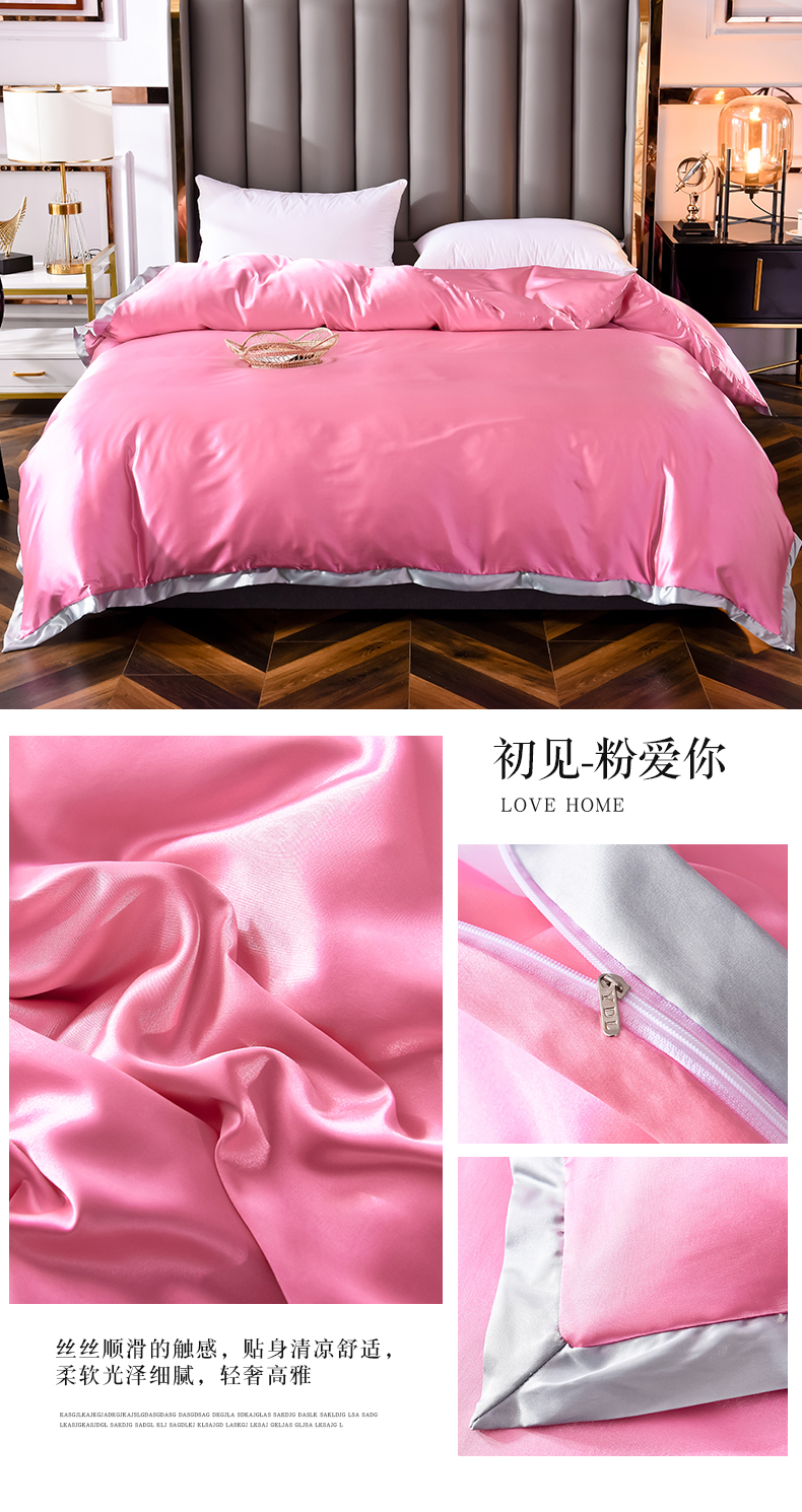 商品名称:经年 2025新款奢华真丝手感冰丝单品套件-初见系列 单被套 初见-粉爱你