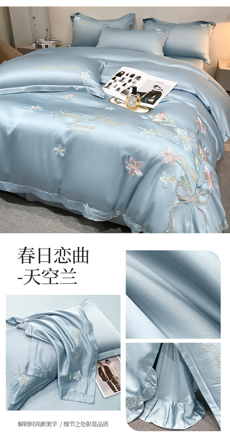 爱家 2025新款雪莲天丝刺绣四件套-春日恋曲 春日恋曲-天空兰