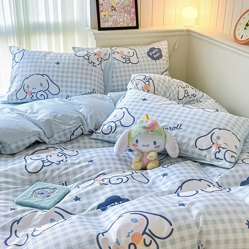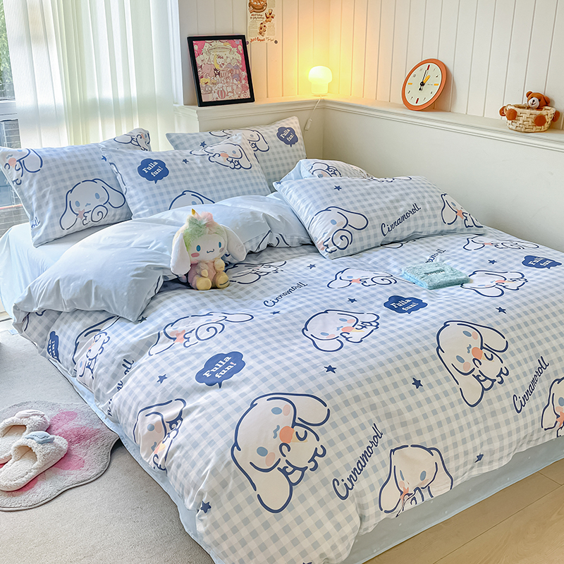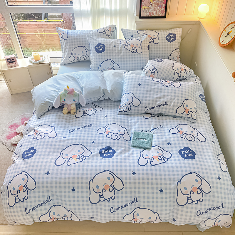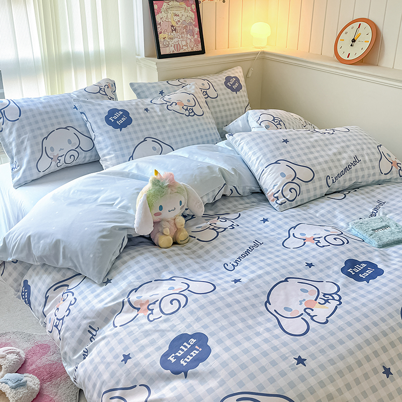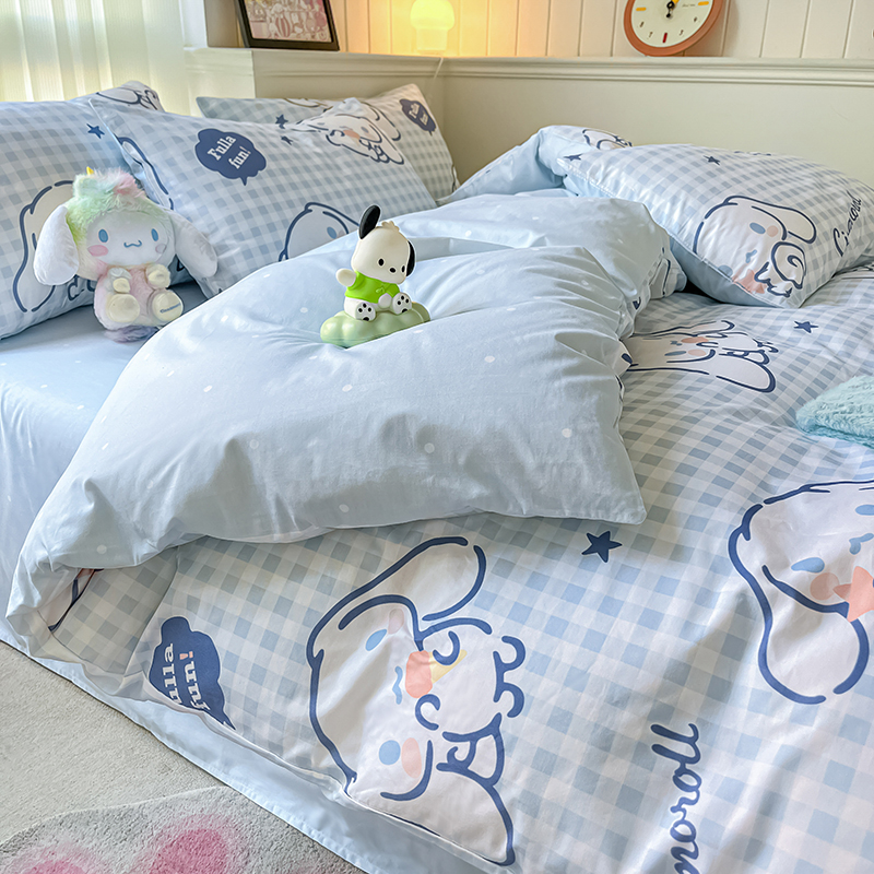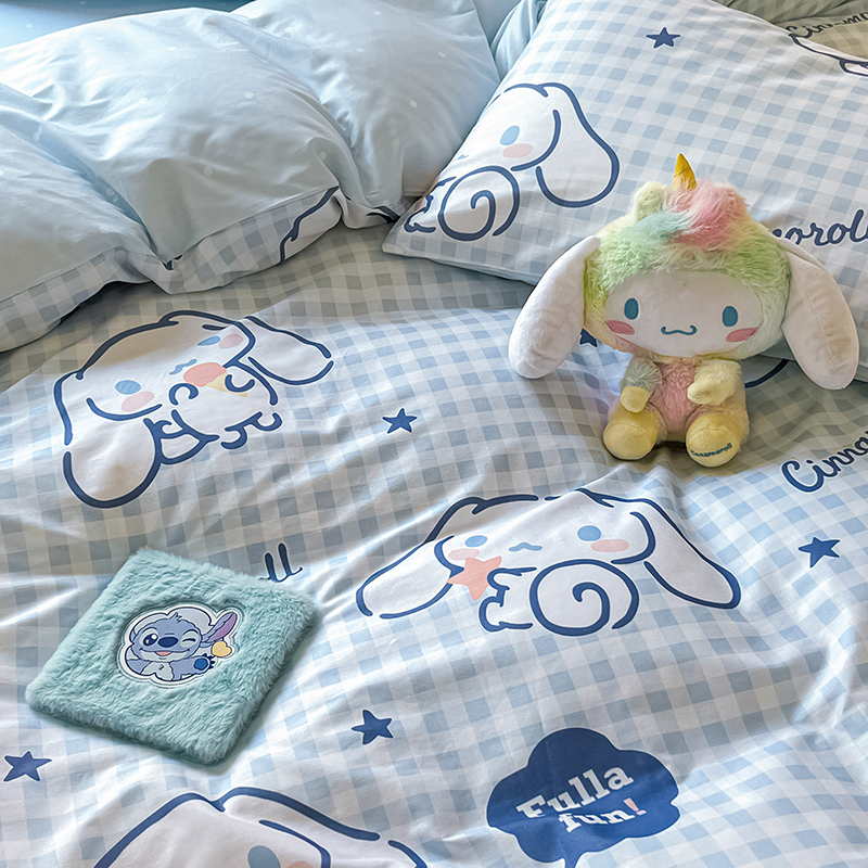 商品名称:顾里2024新款40支活性印花13372喷气全棉三丽鸥系列四件套 蓝格玉桂兔