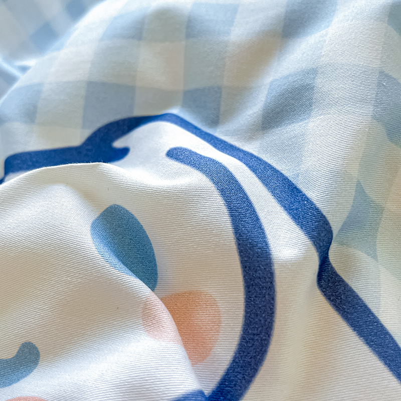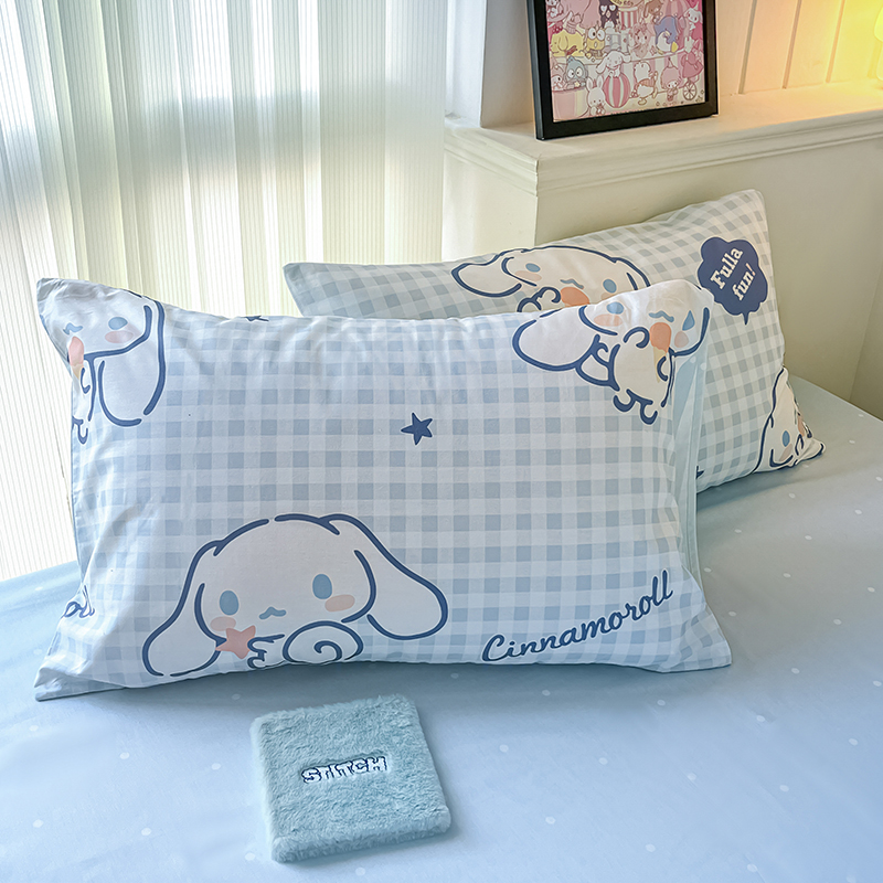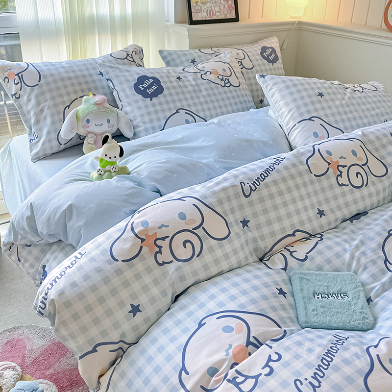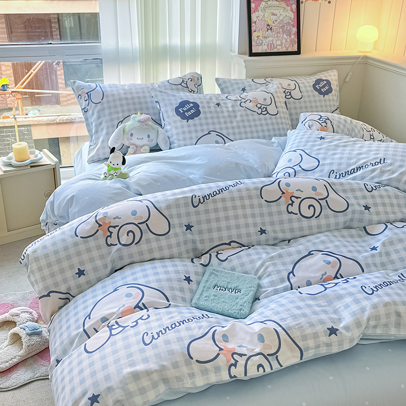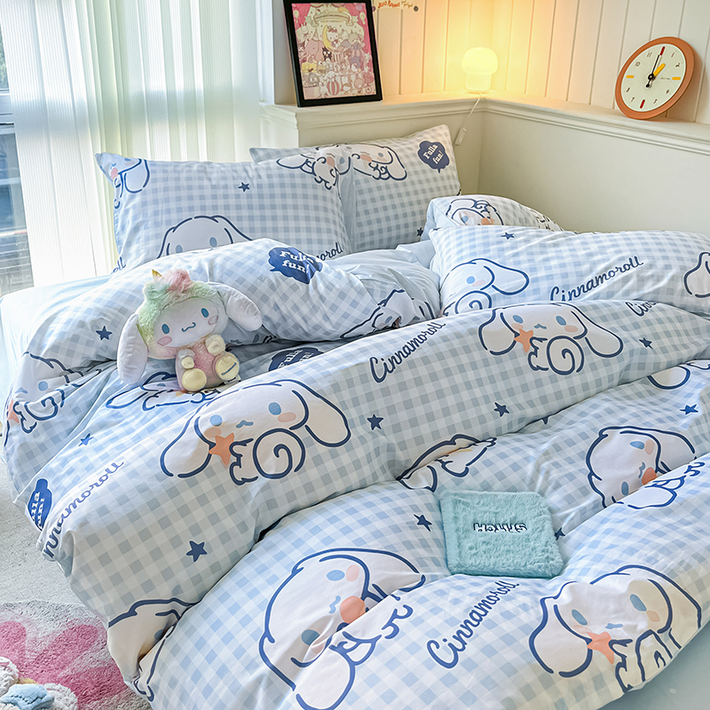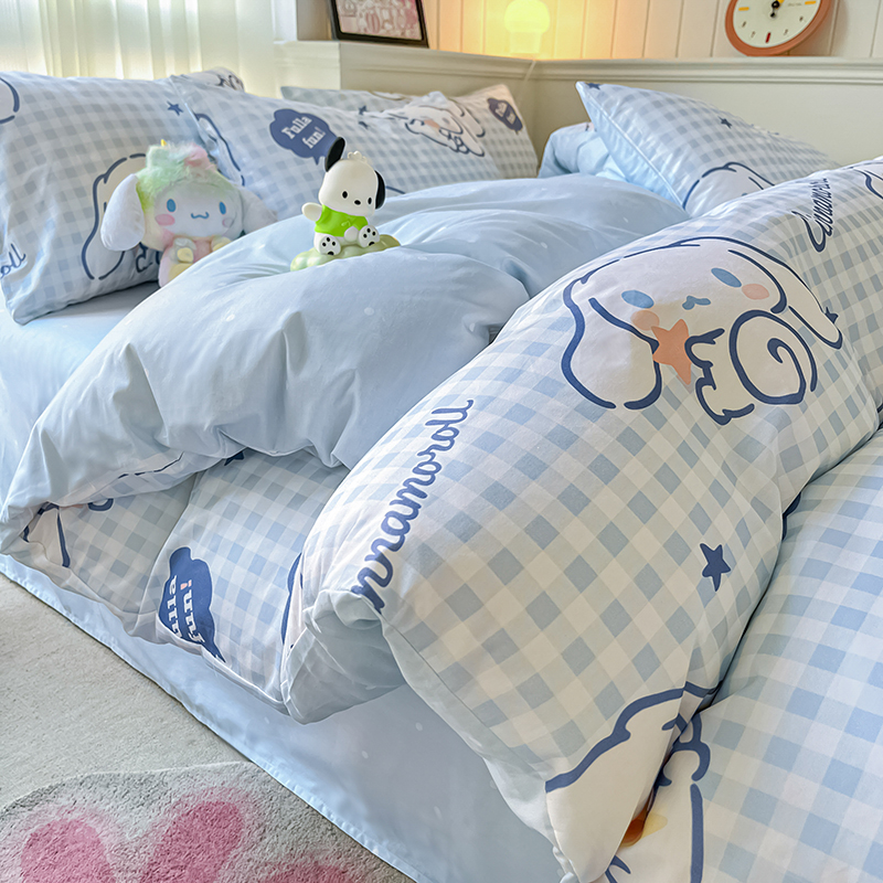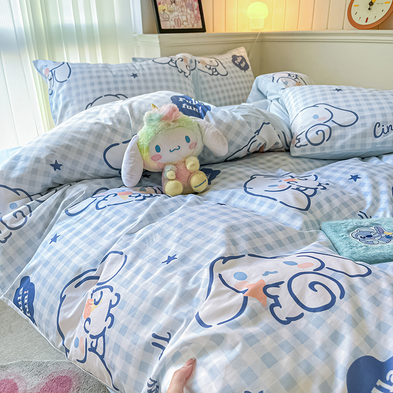 商品名称:顾里2024新款40支活性印花13372喷气全棉三丽鸥系列四件套 蓝格玉桂兔