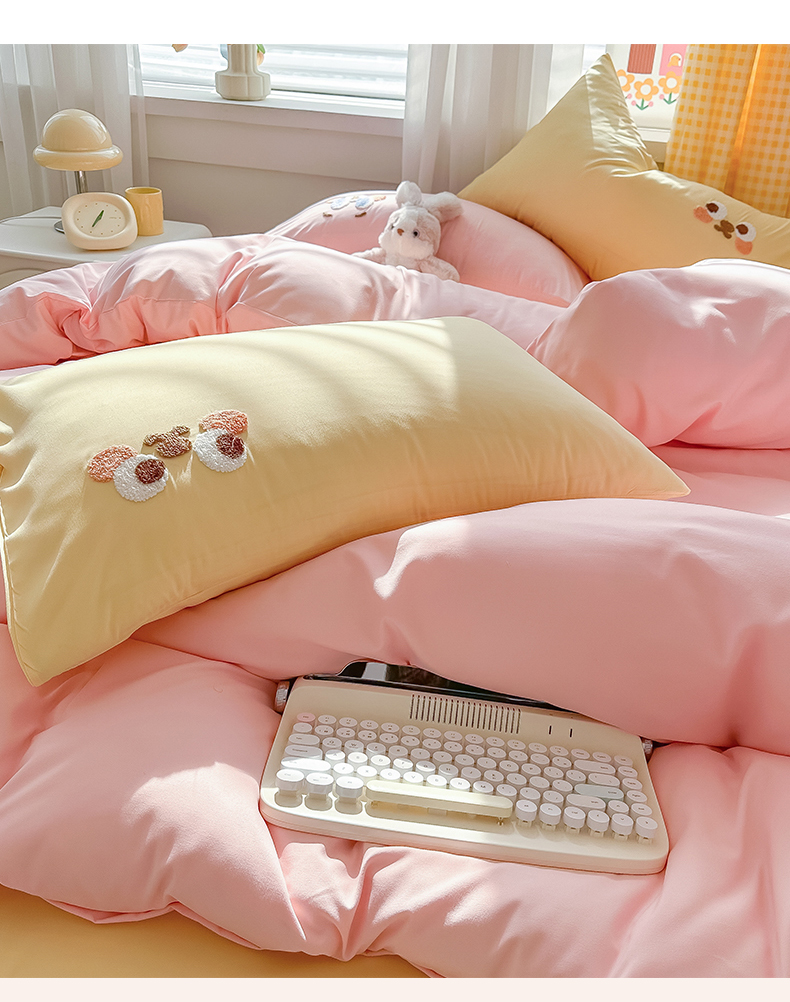 当前位置: 91家纺网 > 商品网购 > 床品套件 > 四件套 > 水洗棉四件套 > 韩都家居 2024新款水洗棉萌眼系列四件套 玉+奶黄