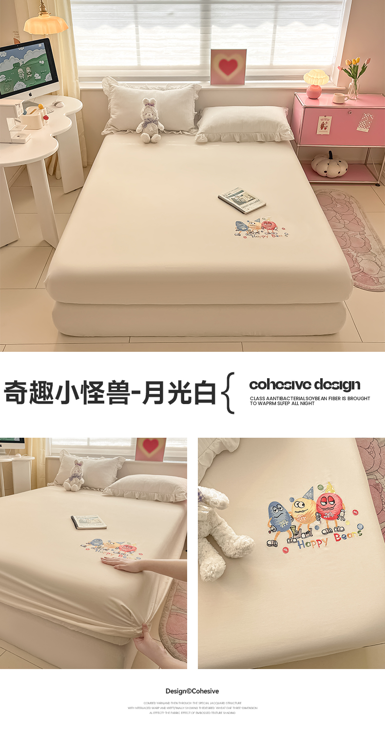 商品名称:2024新款A类全棉水洗棉绣花单床笠 奇趣小怪兽-月光白