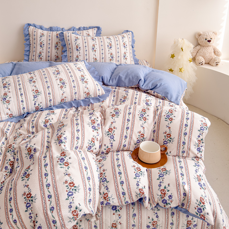 (总)雅眠居 2025爆款针织棉双层纱印花床盖四件套,爱心粉,爱心绿,半夏,蝶恋,粉格蝴蝶结,灰韵,蓝格蝴蝶结,玫瑰庄园,蔷薇,甜心,香草绿,幽幽花香,郁金香,蝴蝶印记,奶油波点,五叶花