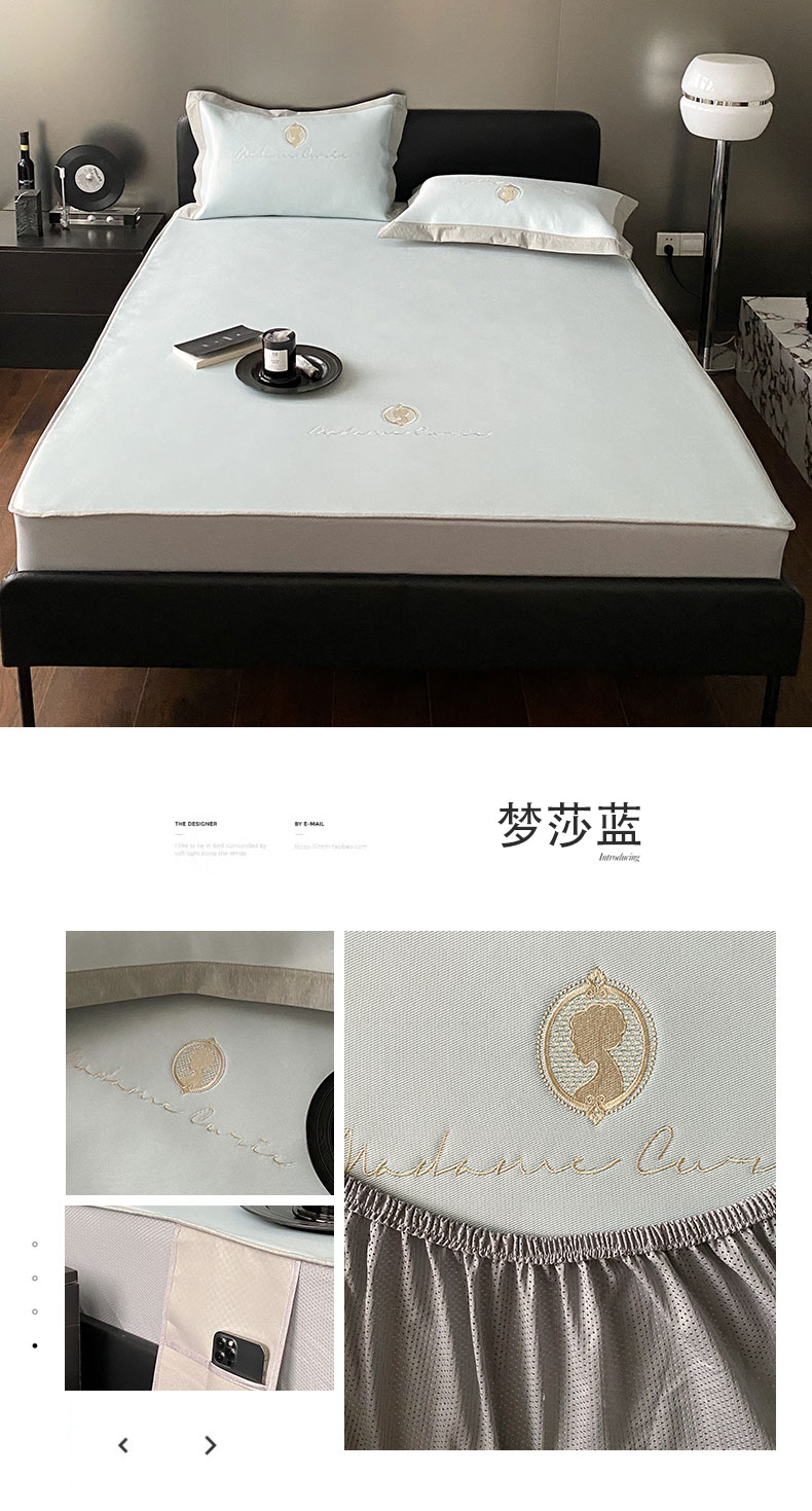 商品名称:三味舒屋 2024新款梦莎刺绣冰丝凉席床席床笠款-风格二 梦莎蓝-床笠款