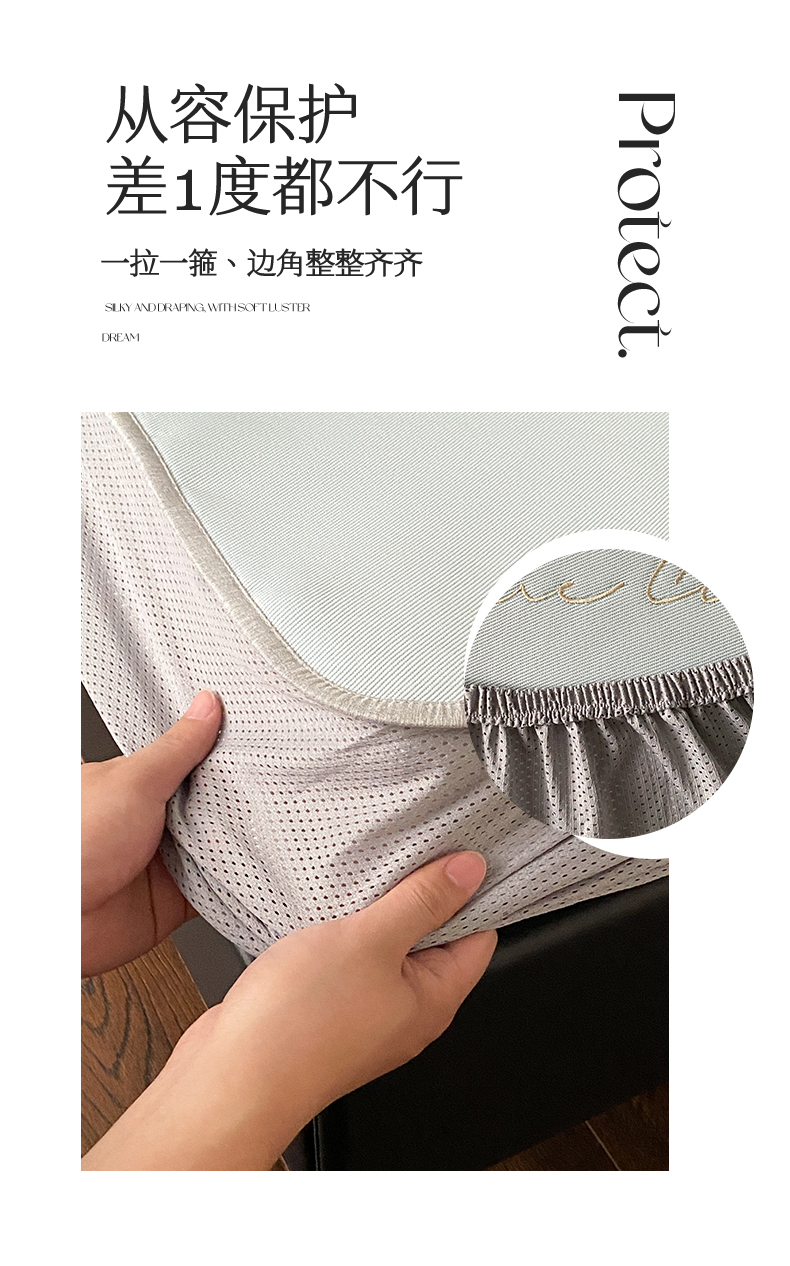 三味舒屋 2024新款梦莎刺绣冰丝凉席床席床笠款-风格二 梦莎蓝-床笠款