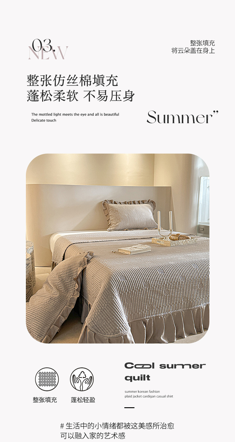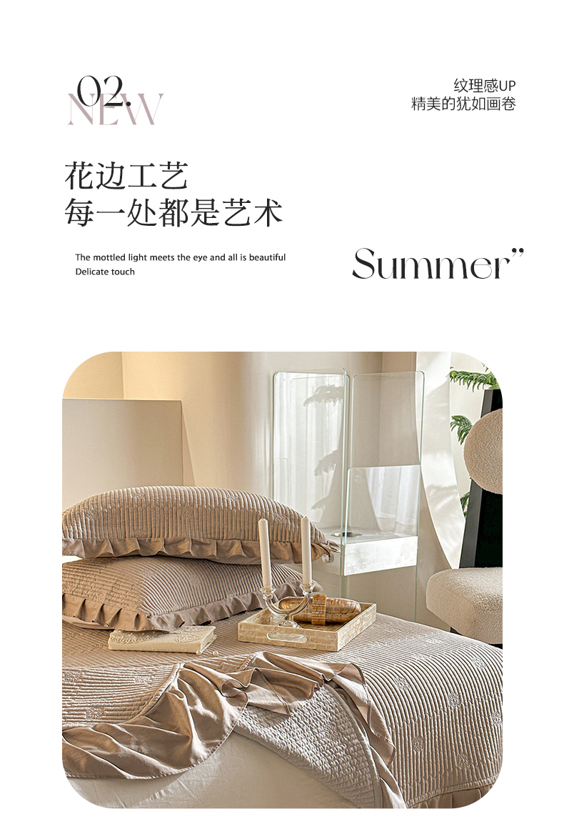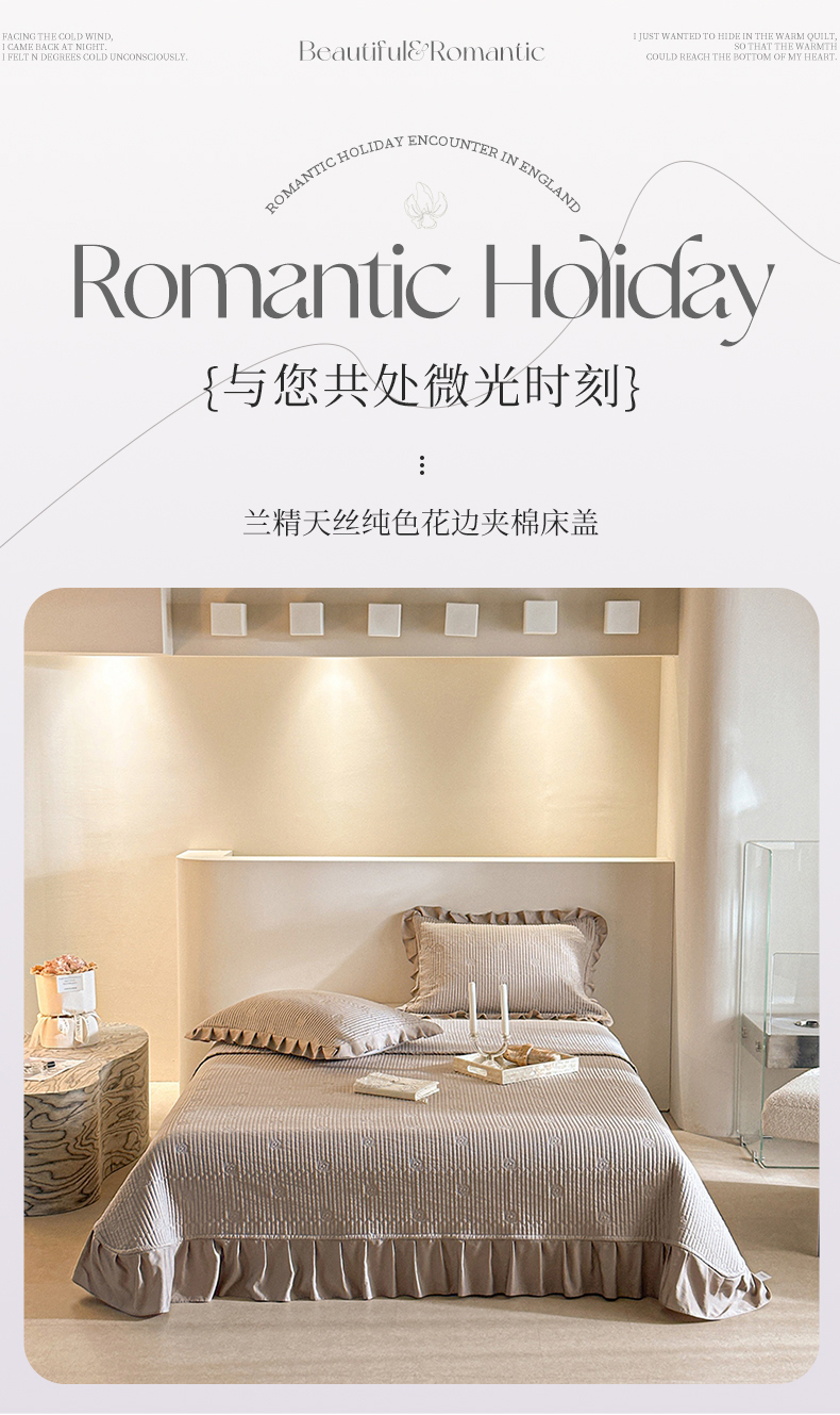 商品名称:源舜家纺 2025新款莱赛尔纯色花边夹棉床盖 咖色