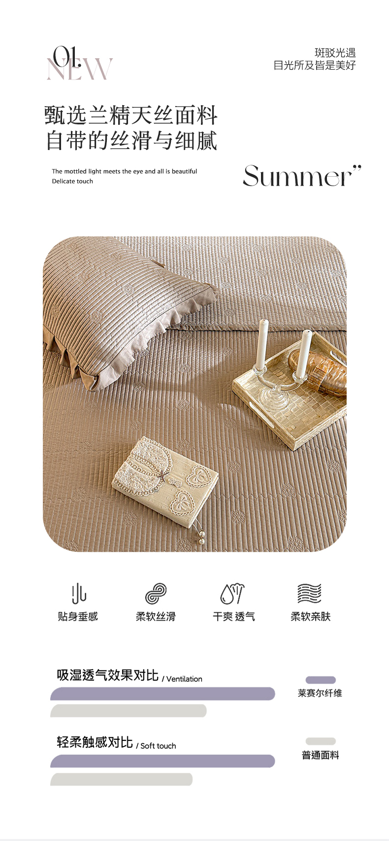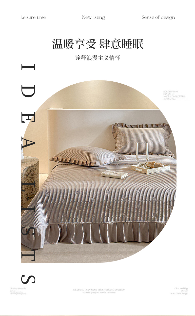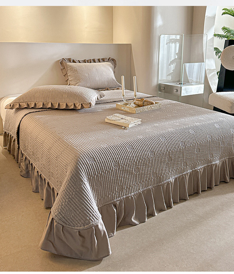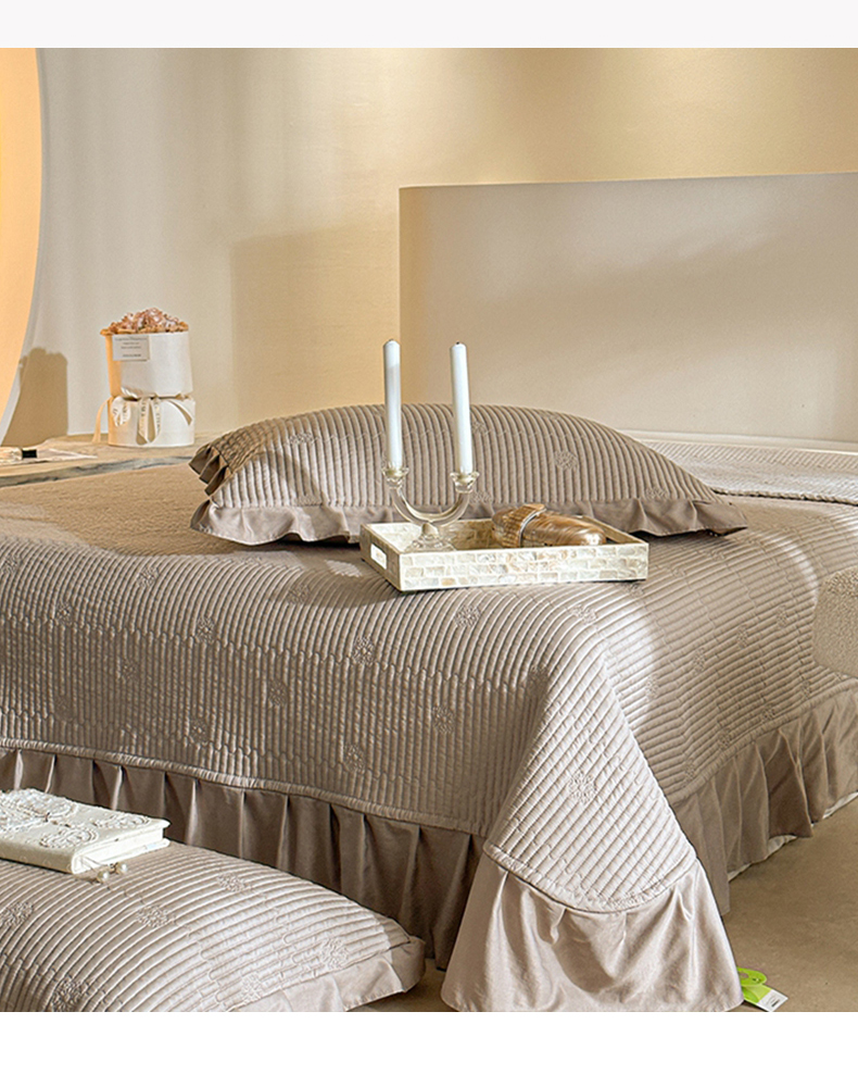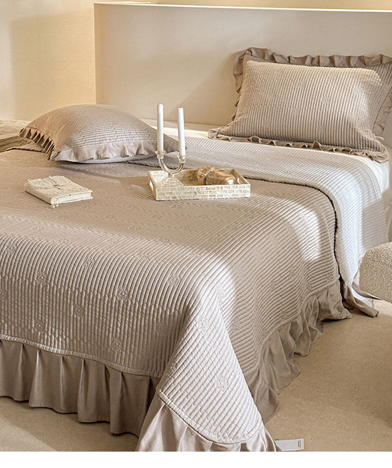 源舜家纺 2025新款莱赛尔纯色花边夹棉床盖 咖色