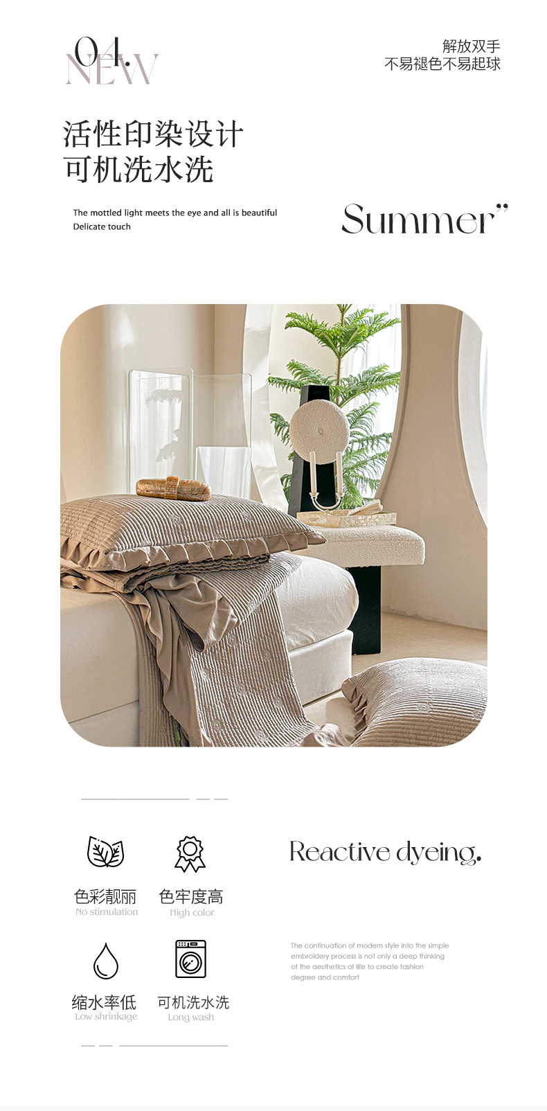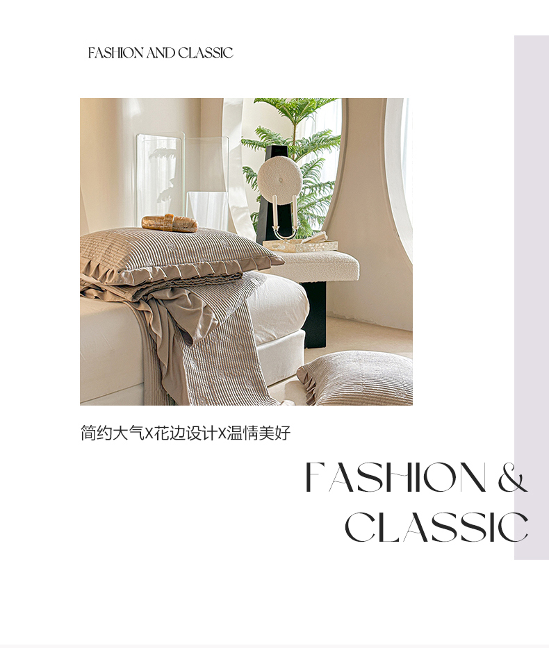 (总)源舜家纺 2025新款色织棉简约韩系花边床盖三件套,简约灰,简约粉,简约绿,简约驼,简约蓝