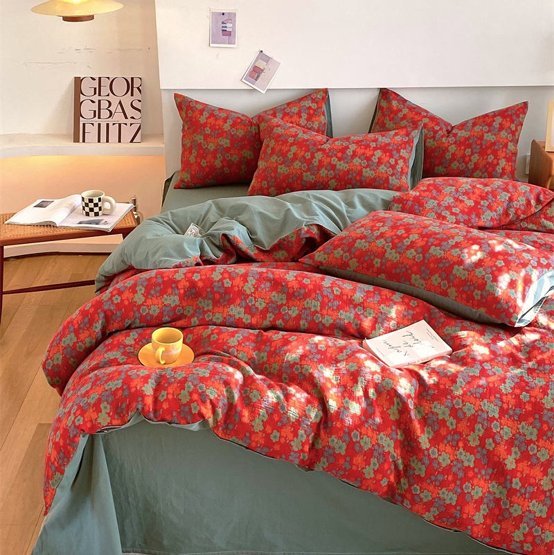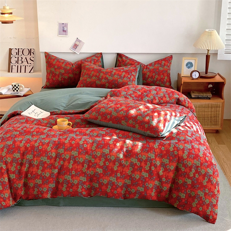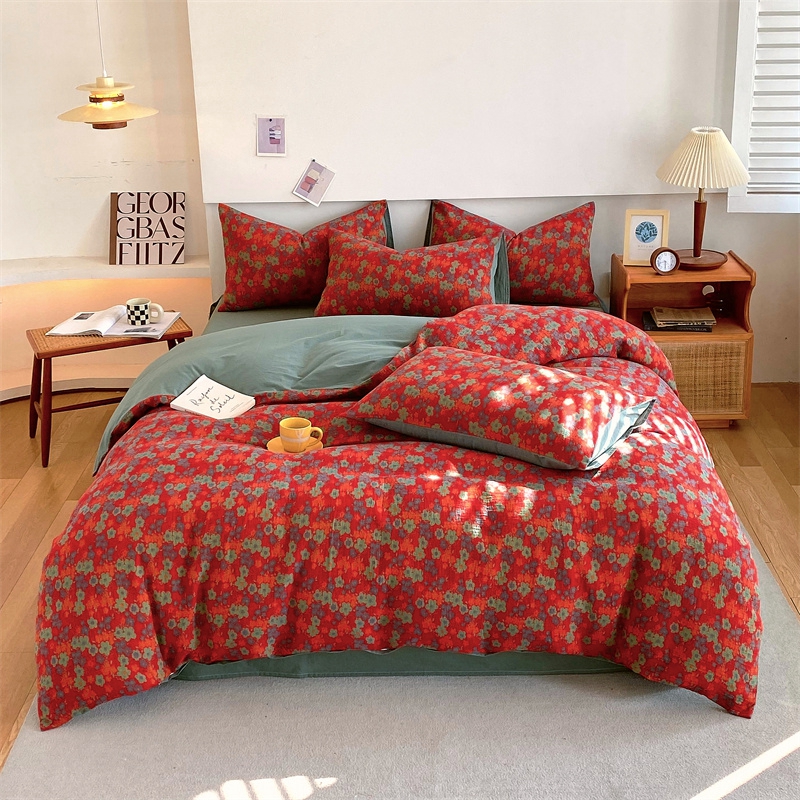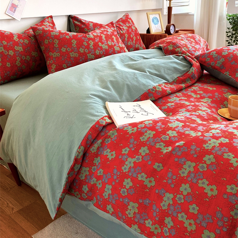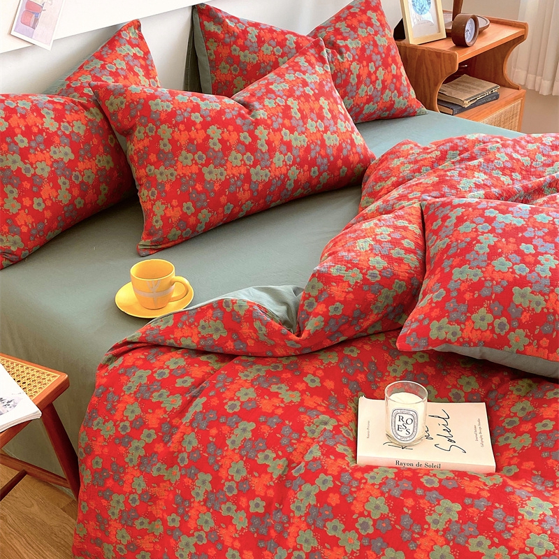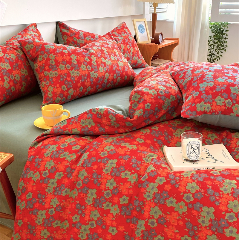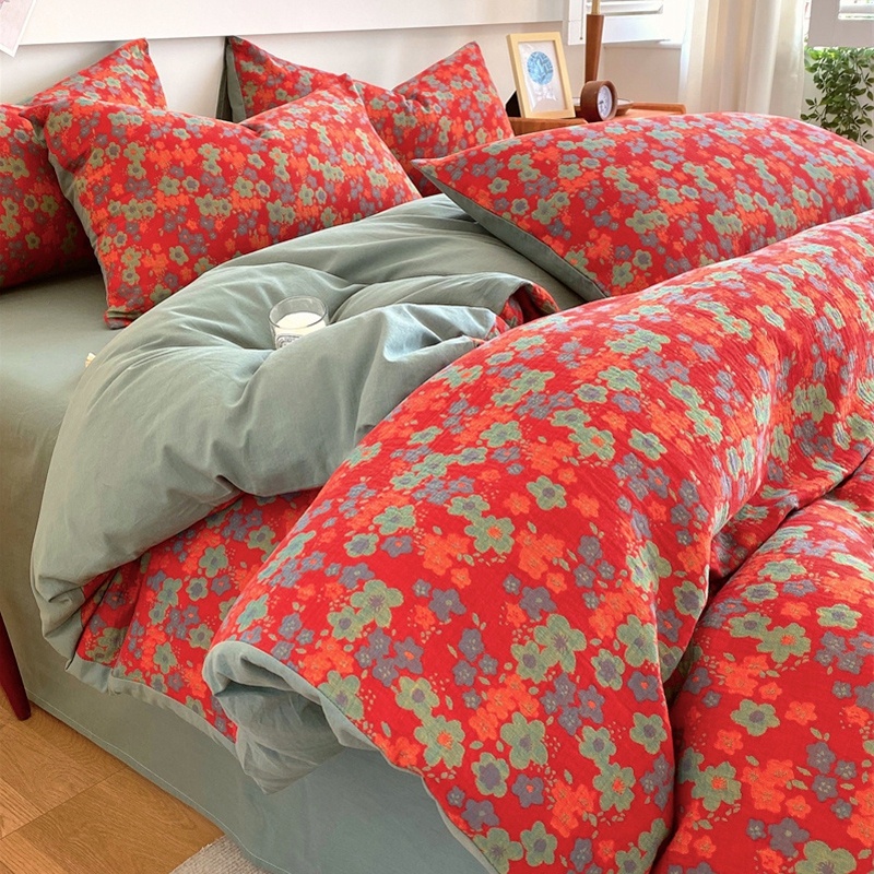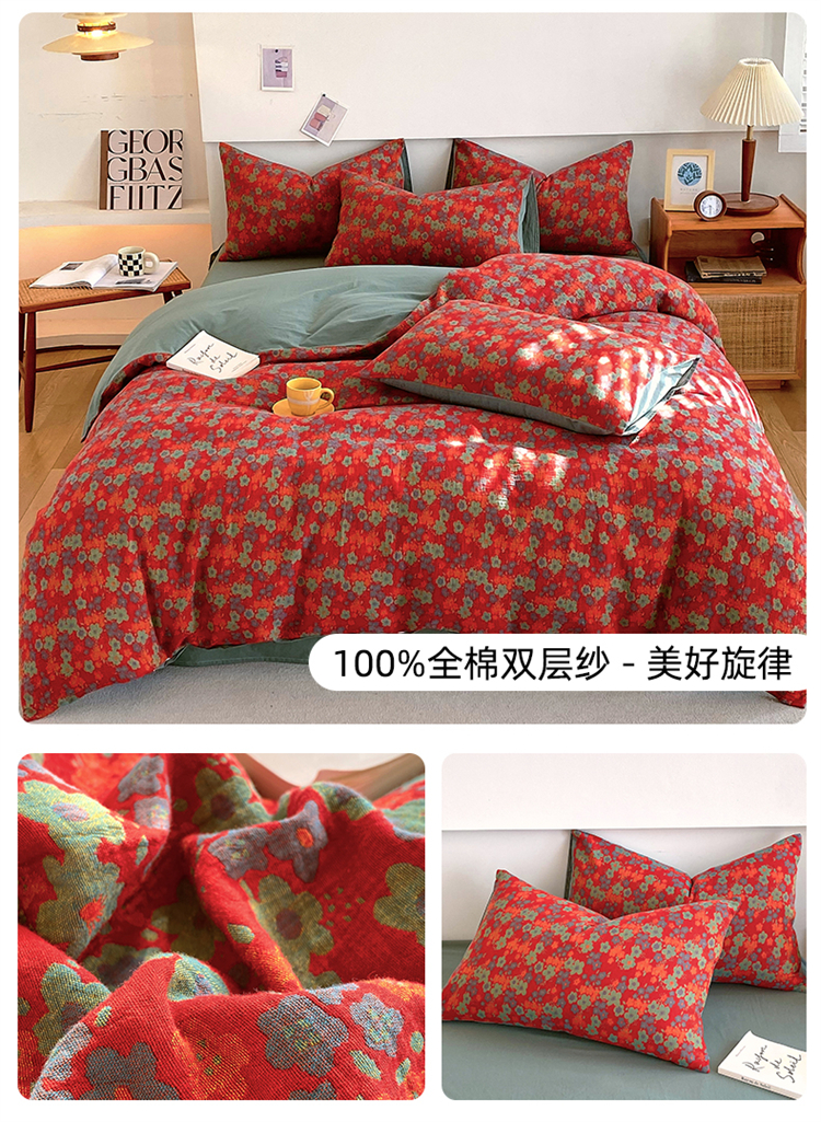 商品名称:2024新款全棉纯棉双层纱三层纱立体提花四件套 萨曼红