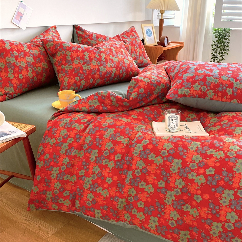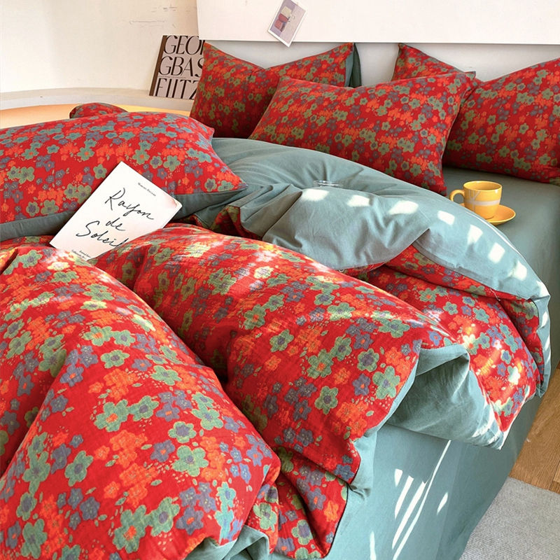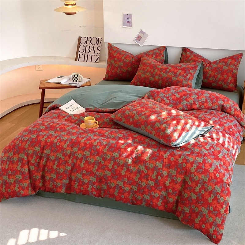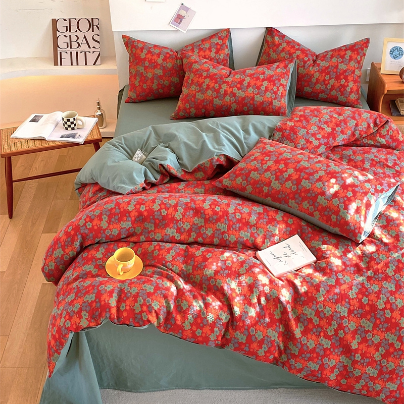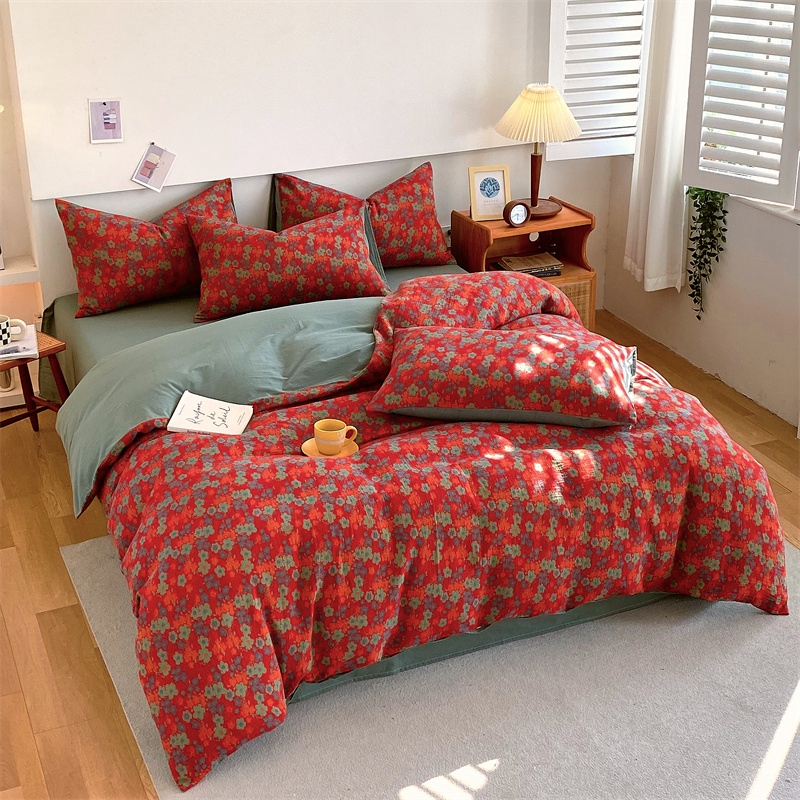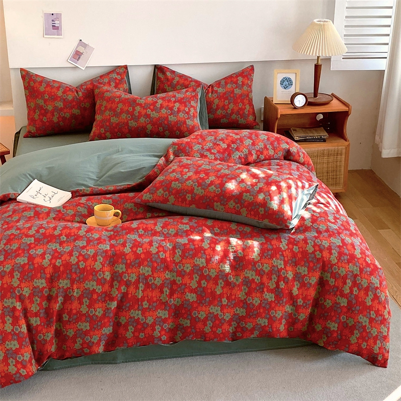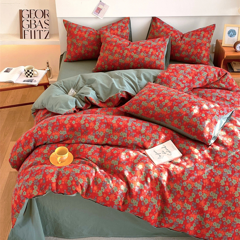 商品名称:2024新款全棉纯棉双层纱三层纱立体提花四件套 萨曼红
