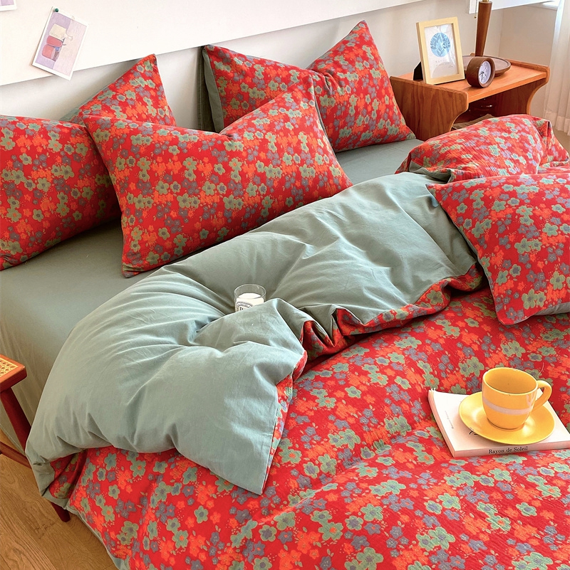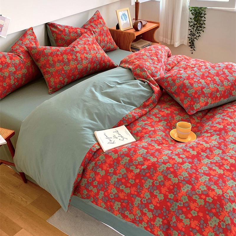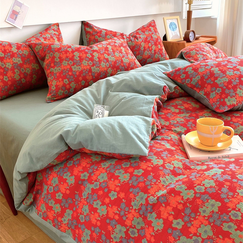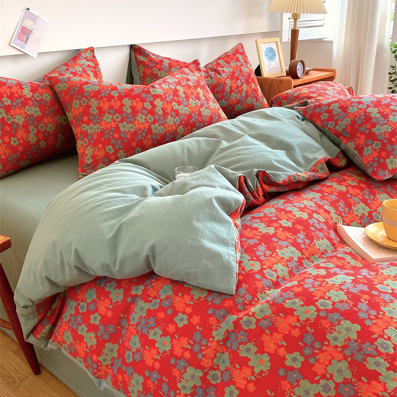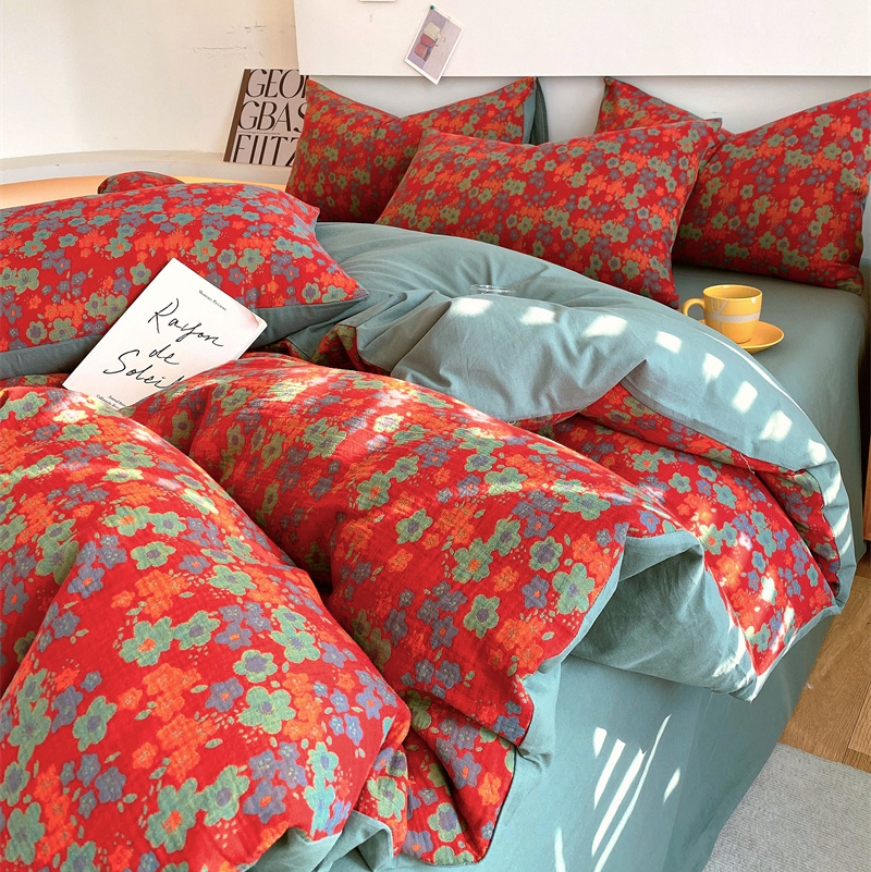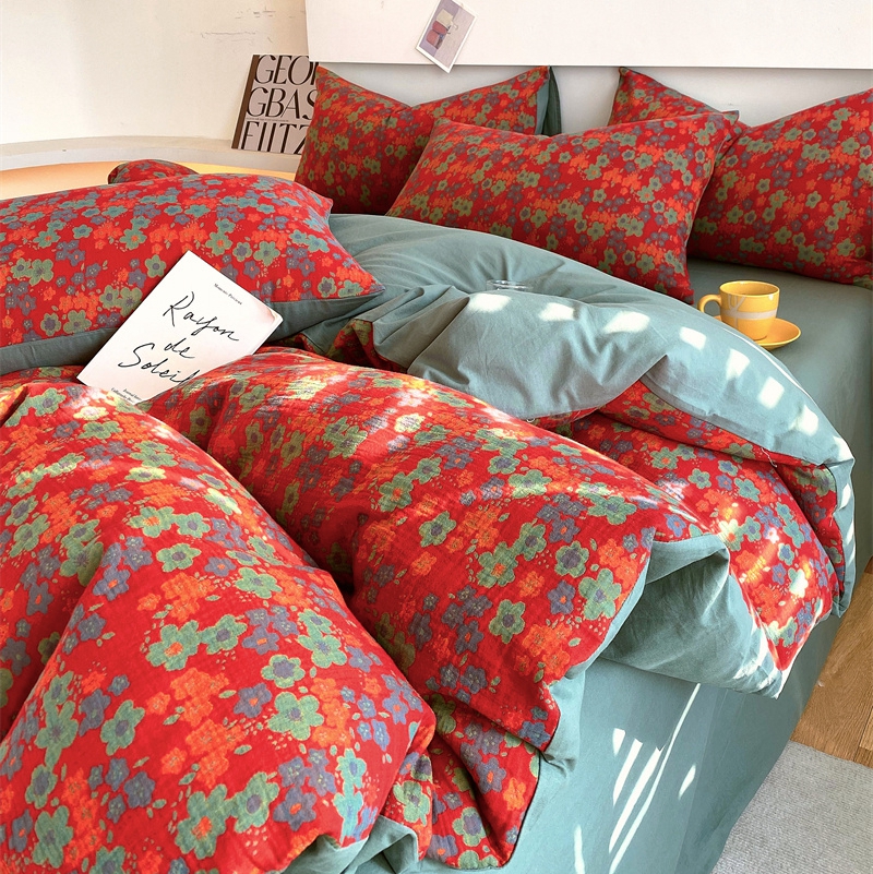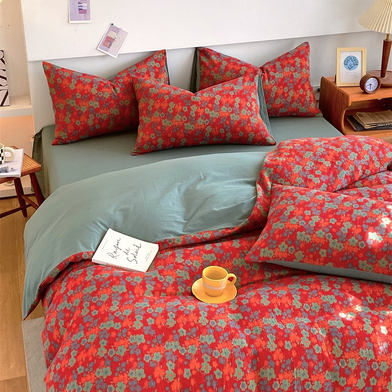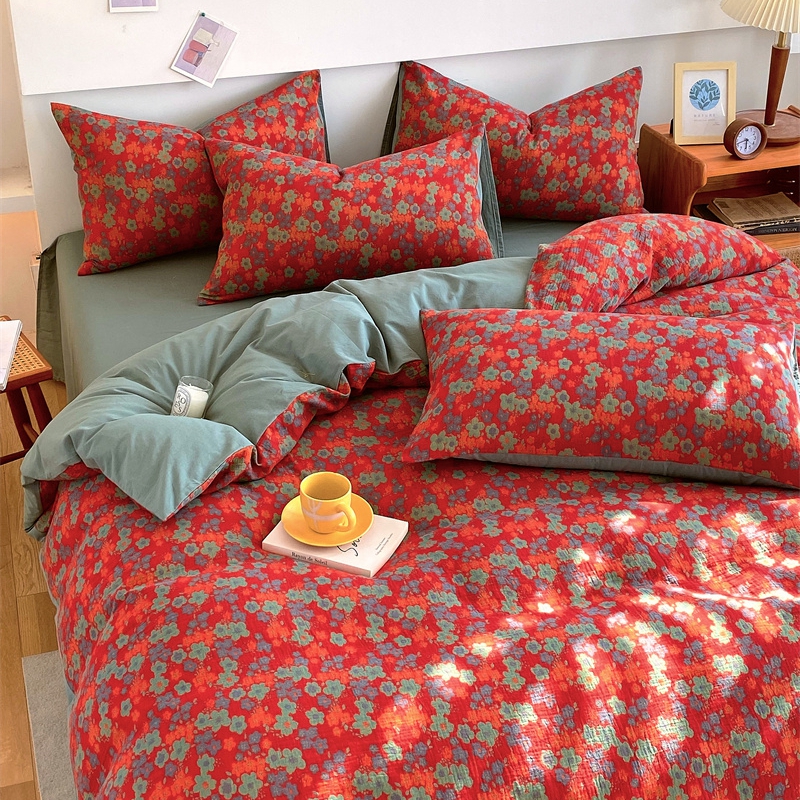 商品名称:2024新款全棉纯棉双层纱三层纱立体提花四件套 萨曼红