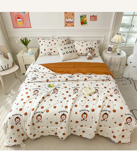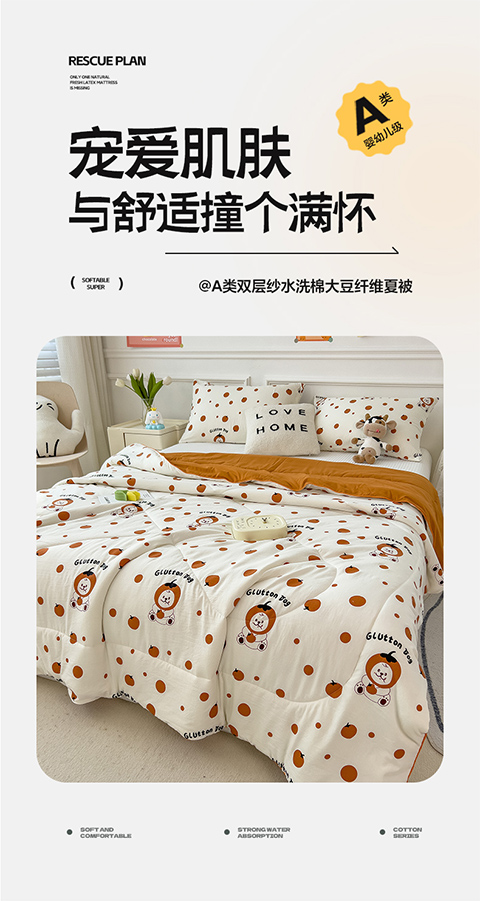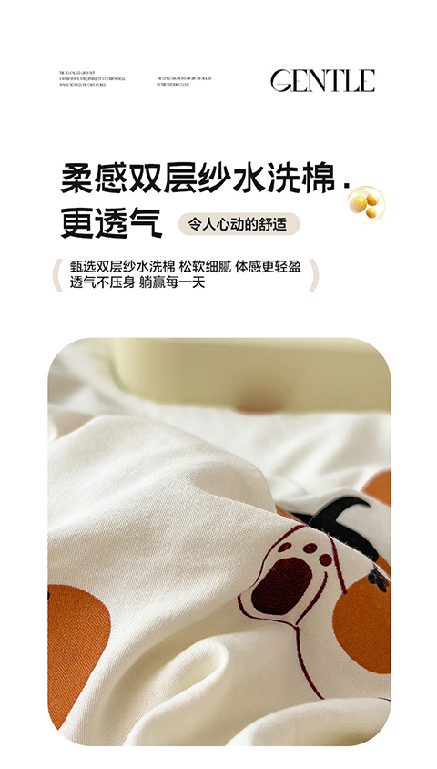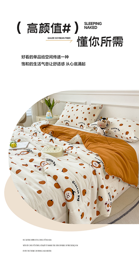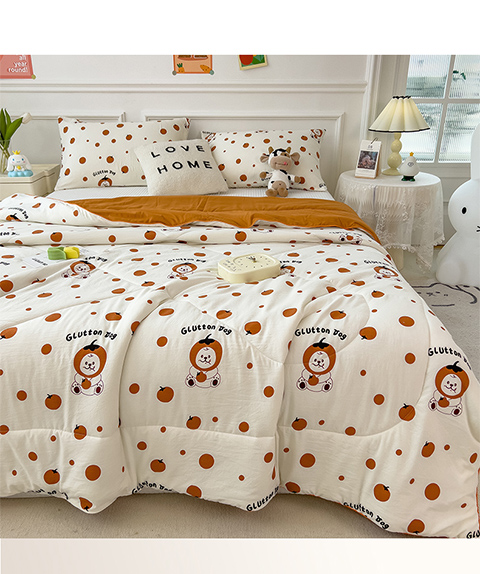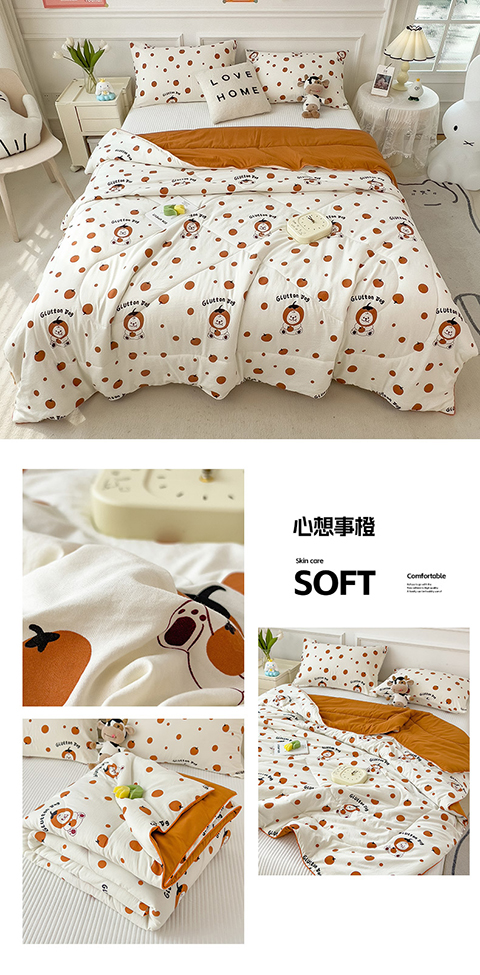 商品名称:网客家纺 2024新款双层纱水洗印花夏被 心想事橙
