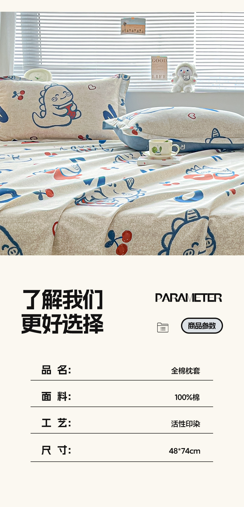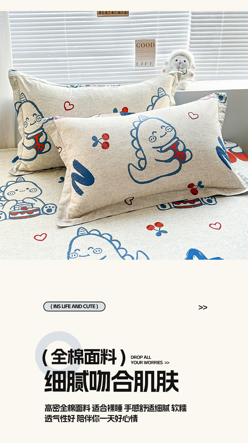 商品名称:涵宸家纺 2024新款全棉小清新印花单品套件--单枕套 枕套-皮皮龙