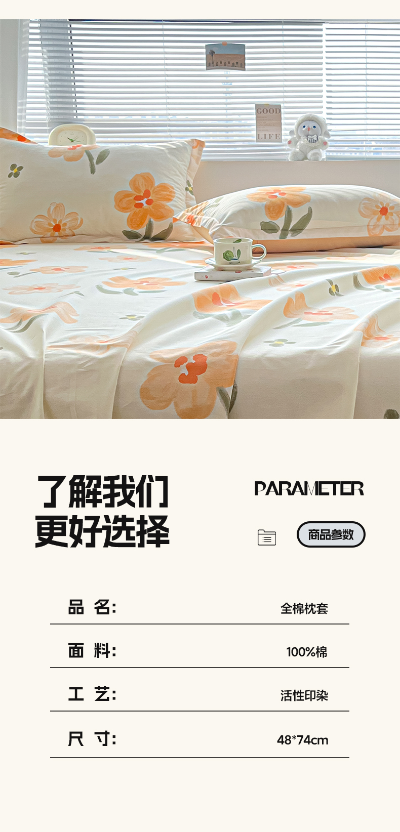 商品名称:涵宸家纺 2024新款全棉小清新印花单品套件--单枕套 枕套-香榭