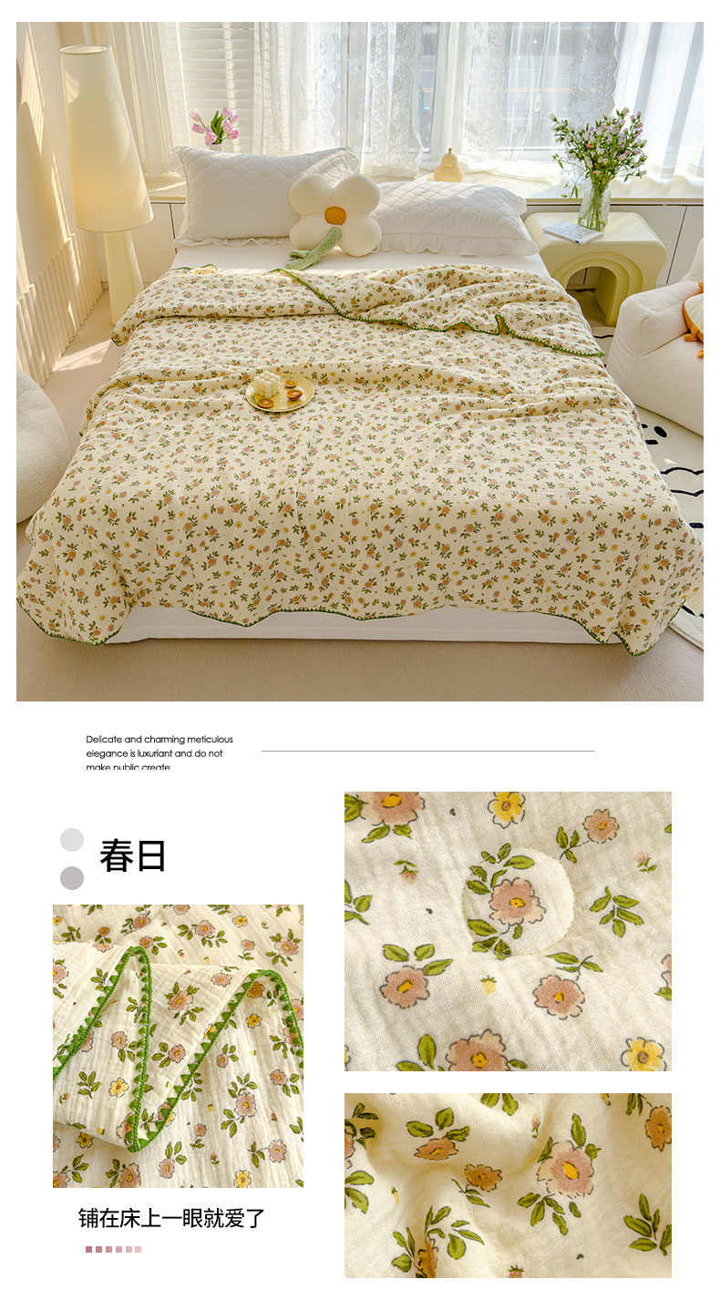 商品名称:芯恋 2025新款母婴级全棉皱皱纱双层纱夏被 春日