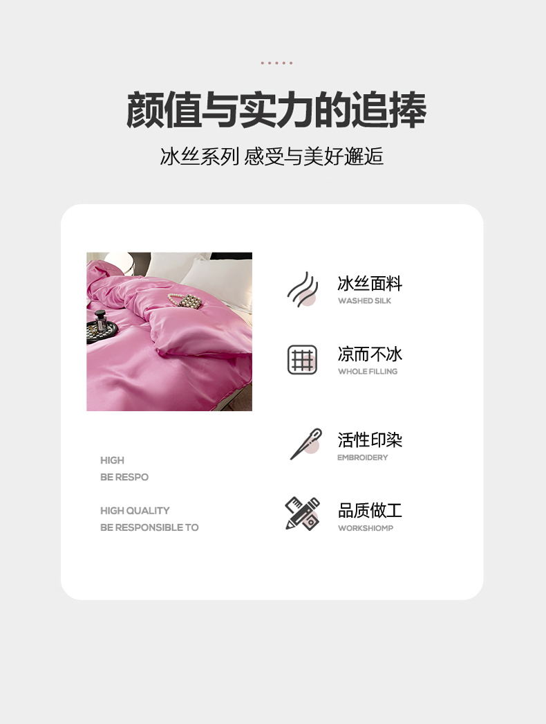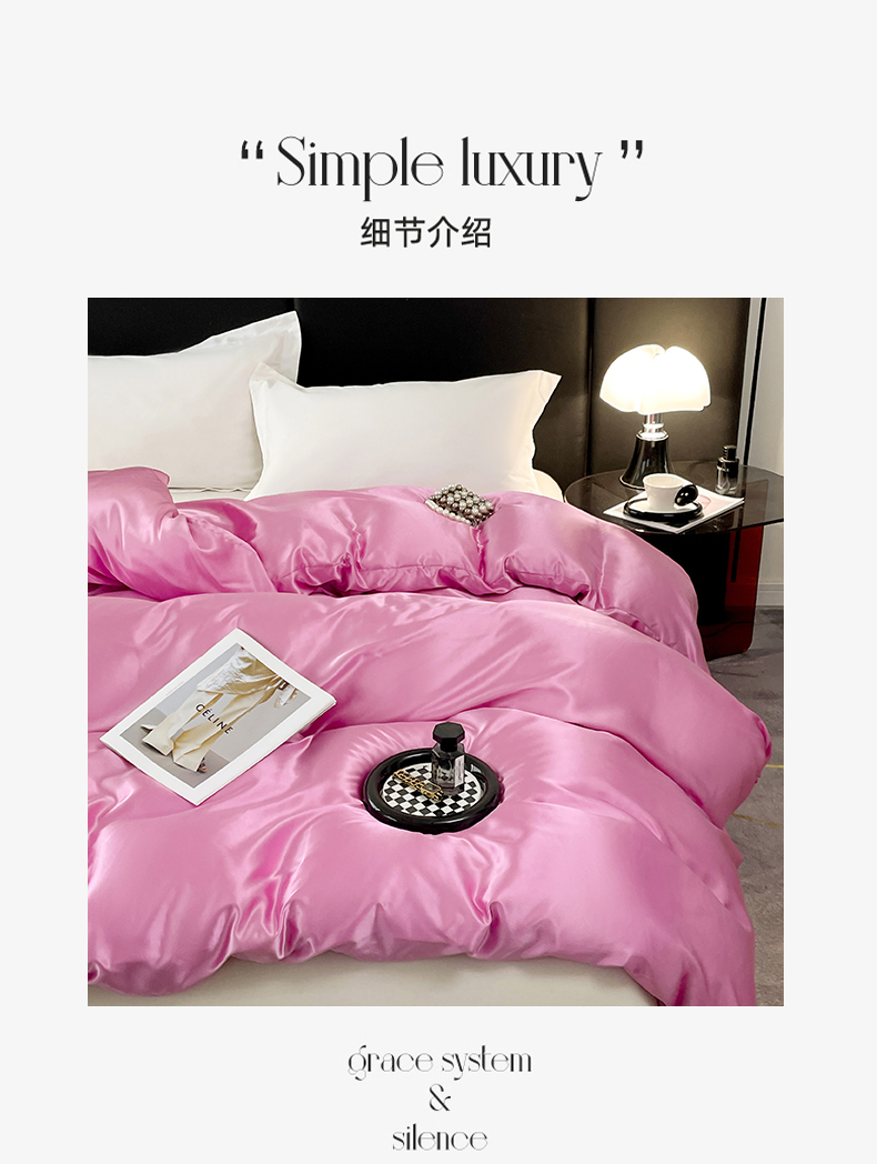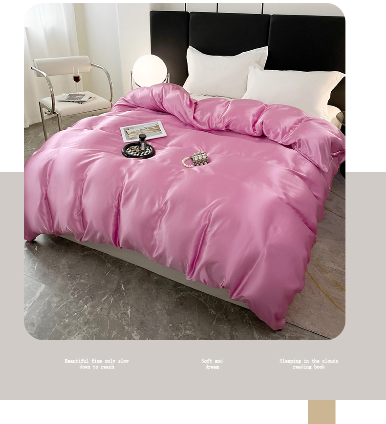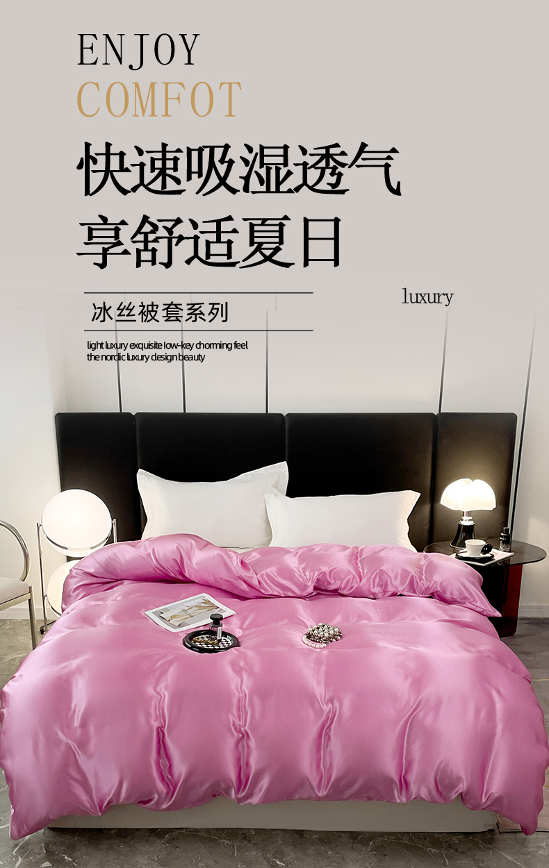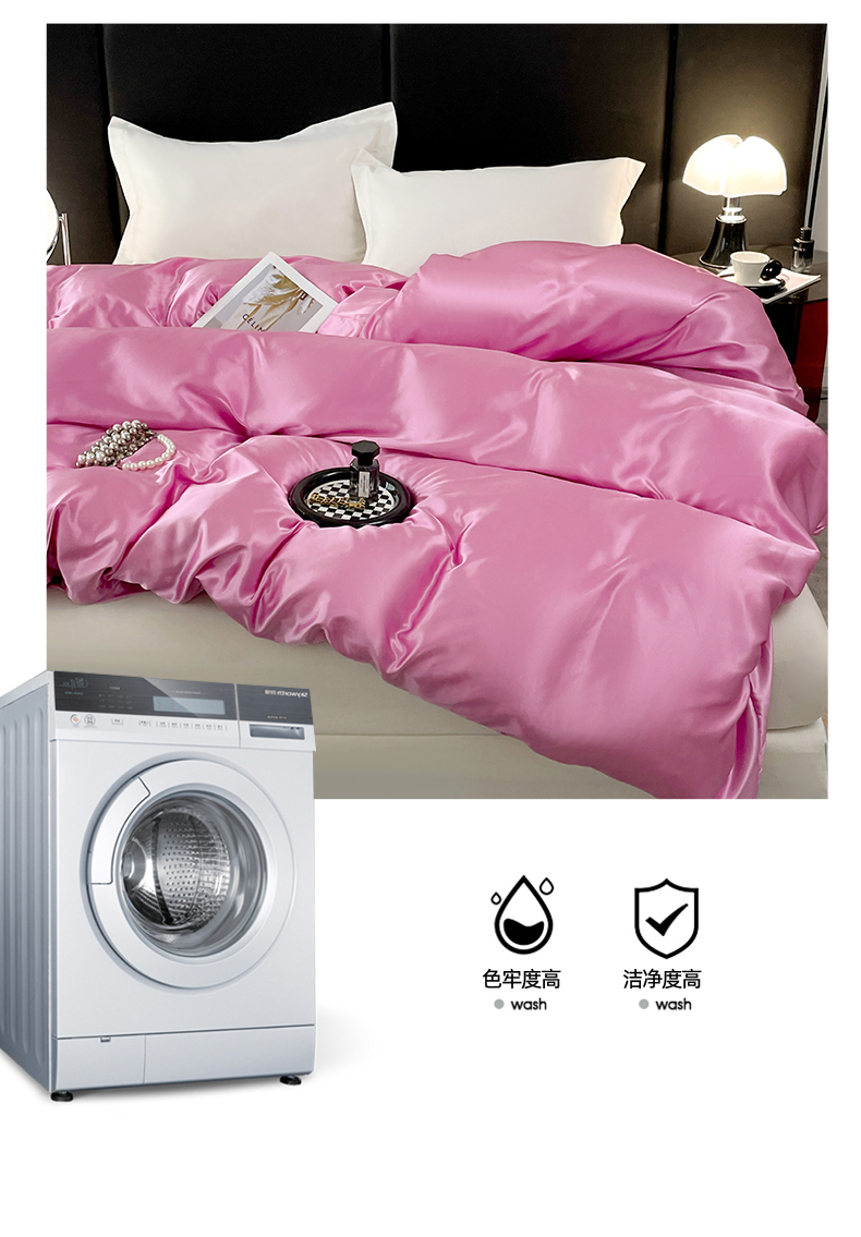 • 91家纺网 家纺一手货源 找家纺 梦舒羽 2025新款可水洗冰丝被套双人床被套带同款床单床笠四件套 粉色