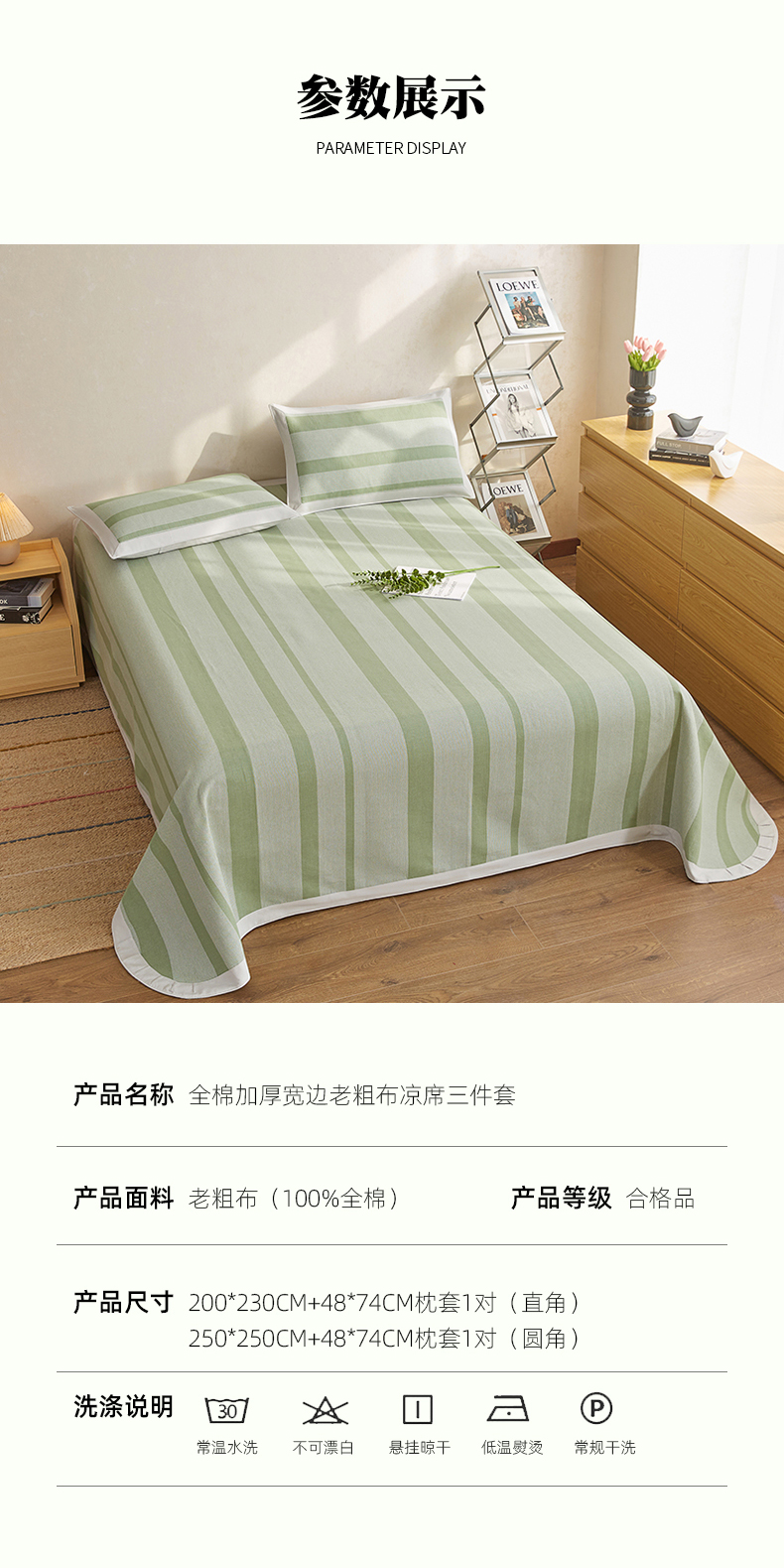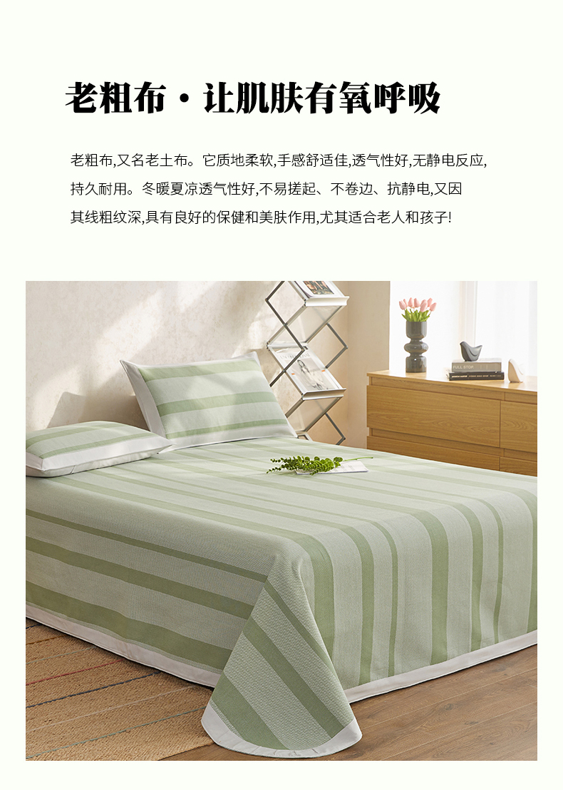 商品名称:金泰莱 2025新款加厚老粗布凉席三件套全棉老粗布床单纯棉床单软凉席 西凉