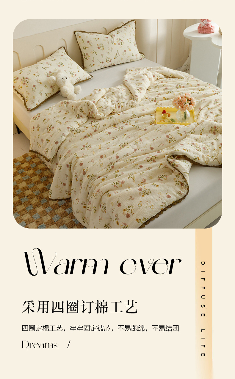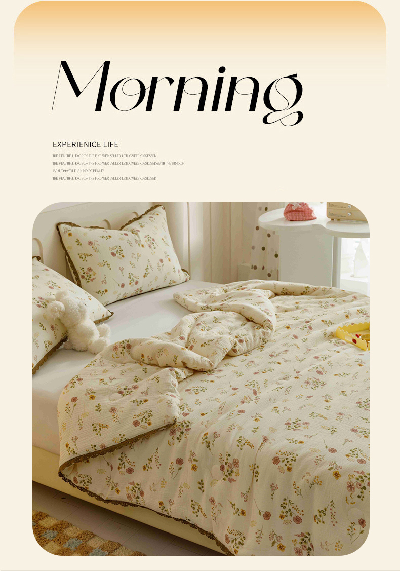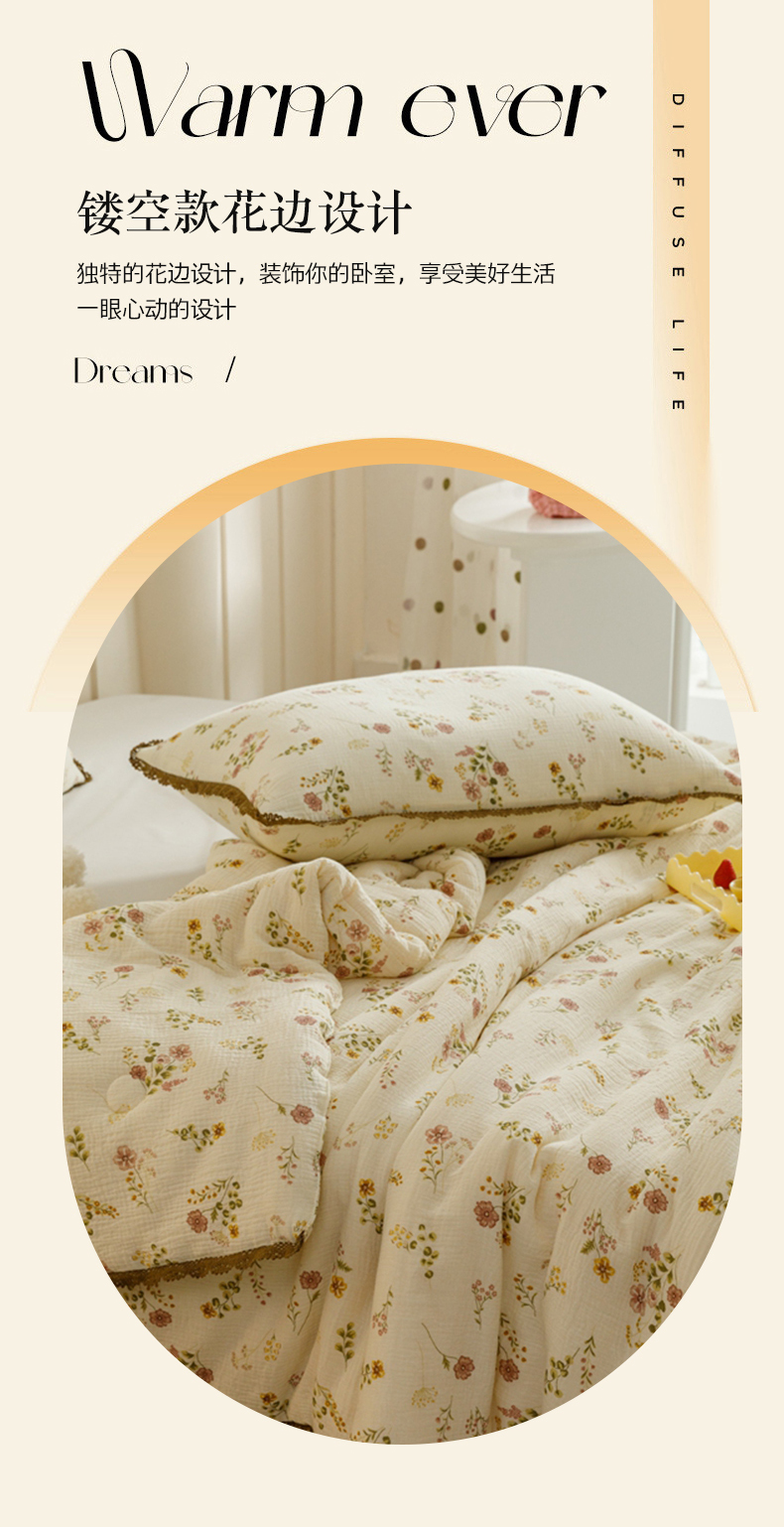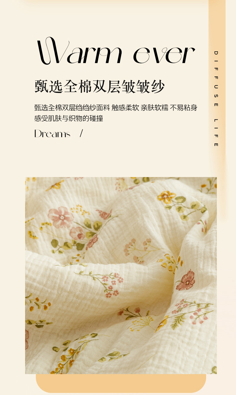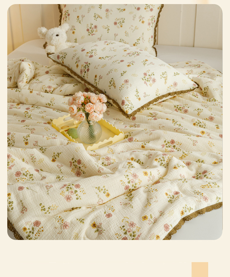 优被业 2025新款全棉双层纱皱皱纱夏被 花语