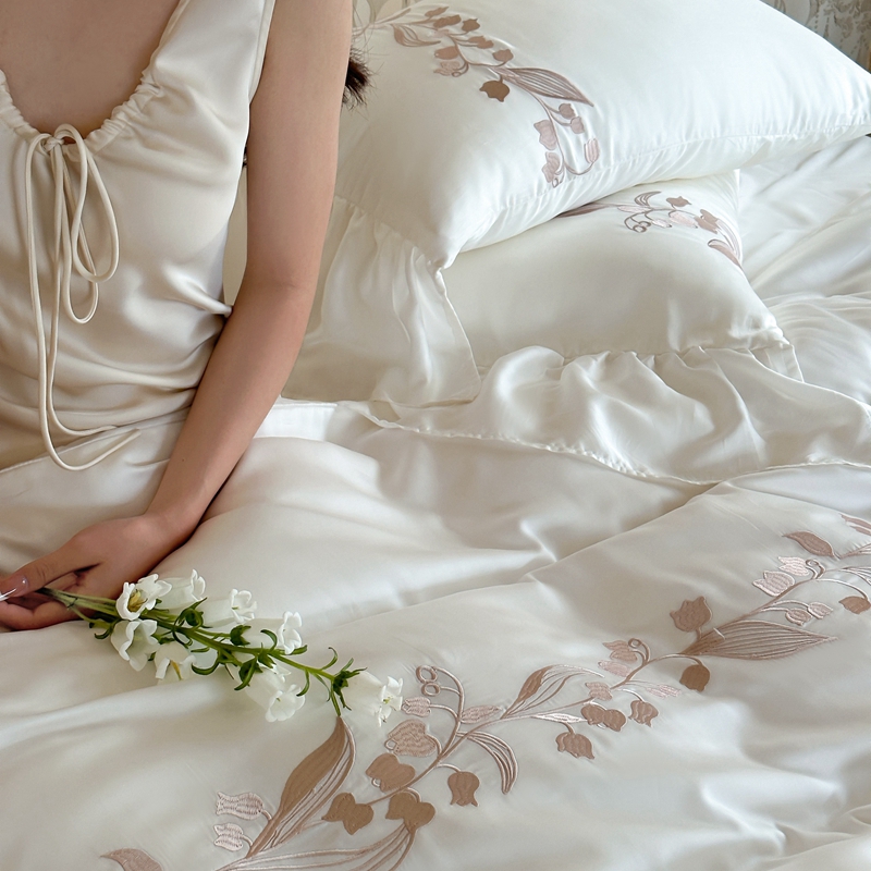 初拾 2024新款60支进口奥地利兰精天丝四件套小法系列 一半铃兰-珠光白
