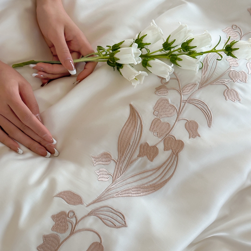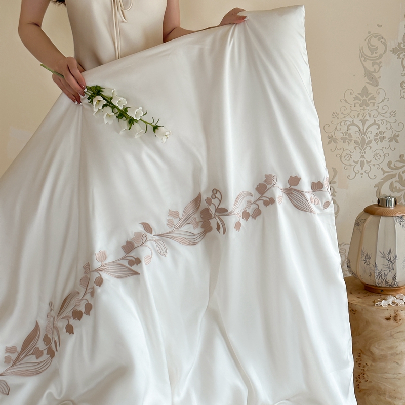 商品名称:初拾 2024新款60支进口奥地利兰精天丝四件套小法系列 一半铃兰-珠光白