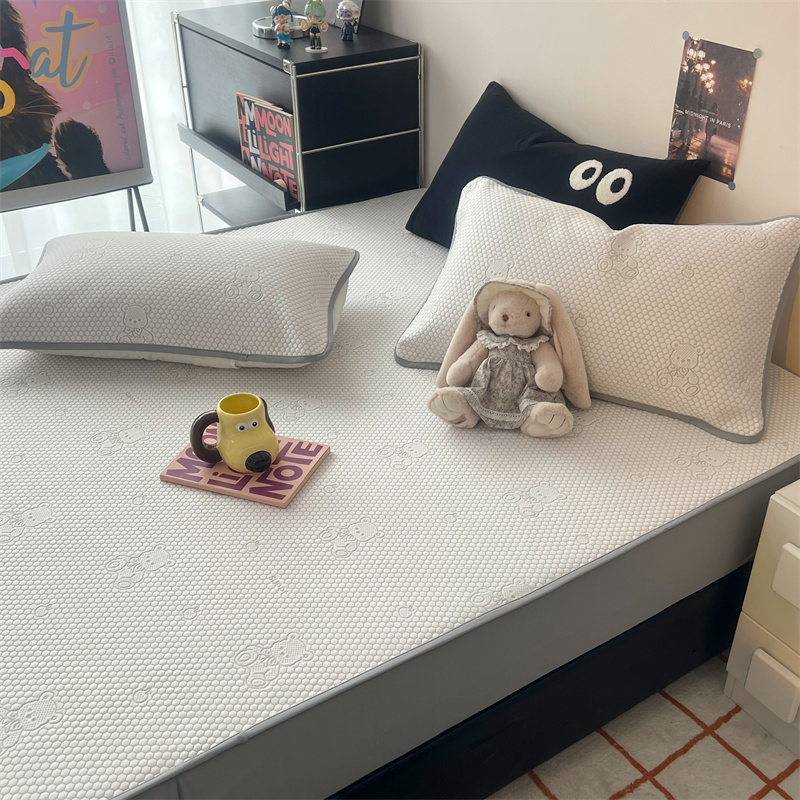 HL原创 2024新款PE聚乙稀纤维-冰魔豆凉席 小熊-灰(平铺款)