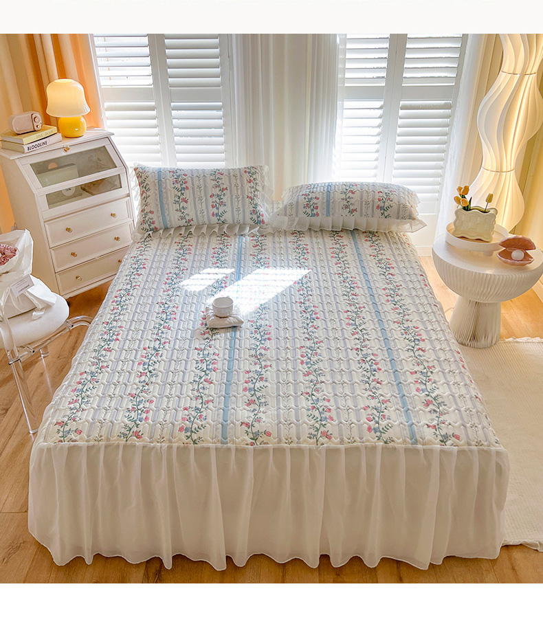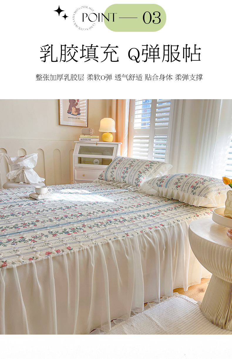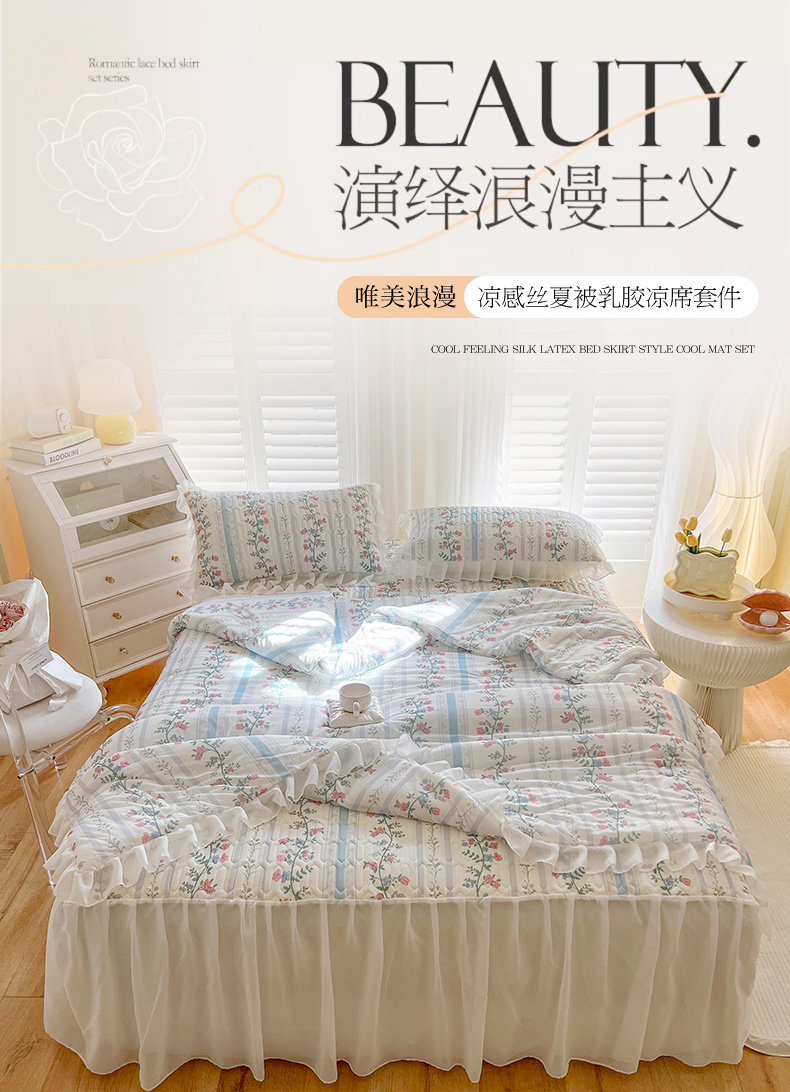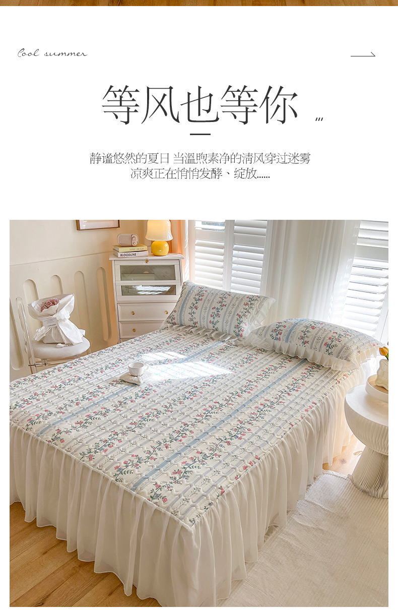慕澄家纺 2024新款小版印花床裙款乳胶凉席三件套 床裙款-花藤