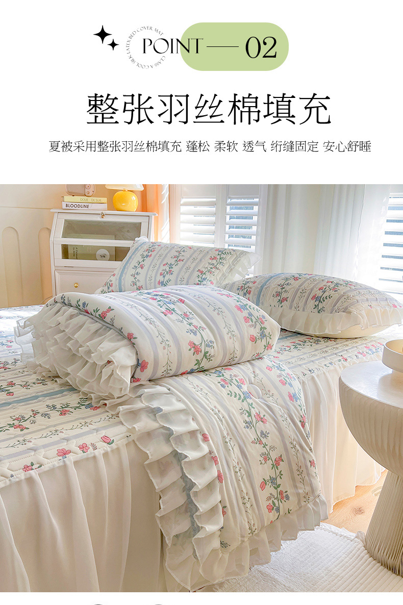 慕澄家纺 2024新款时尚印花泡泡棉花边夏被夏凉被空调被 夏被-心语,夏被-心语