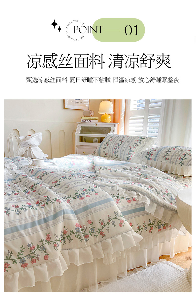 慕澄家纺 2024新款时尚印花泡泡棉花边夏被夏凉被空调被 夏被-如愿,夏被-如愿