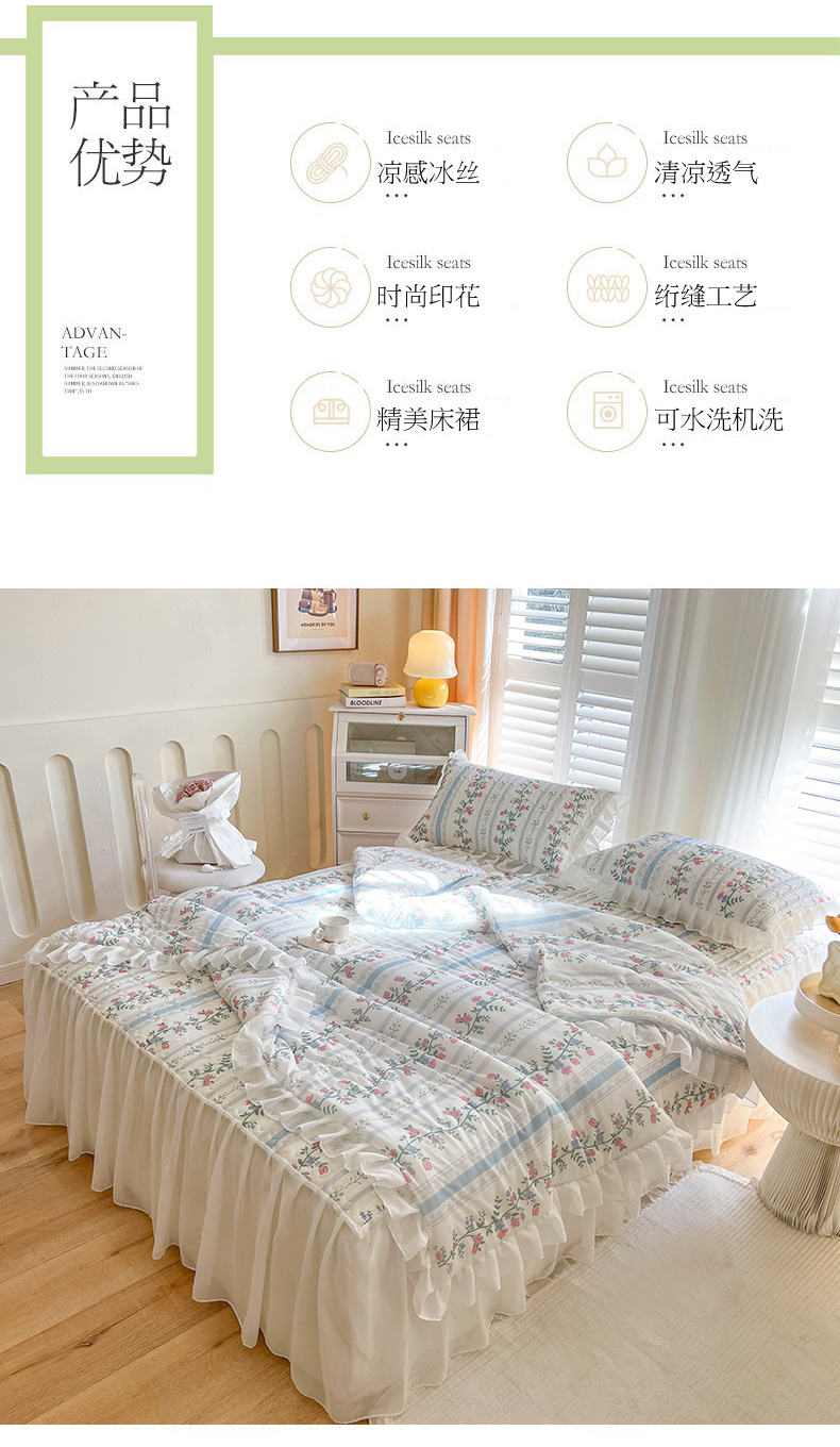 慕澄家纺 2024新款时尚印花泡泡棉花边夏被夏凉被空调被 夏被-伊梦,夏被-伊梦