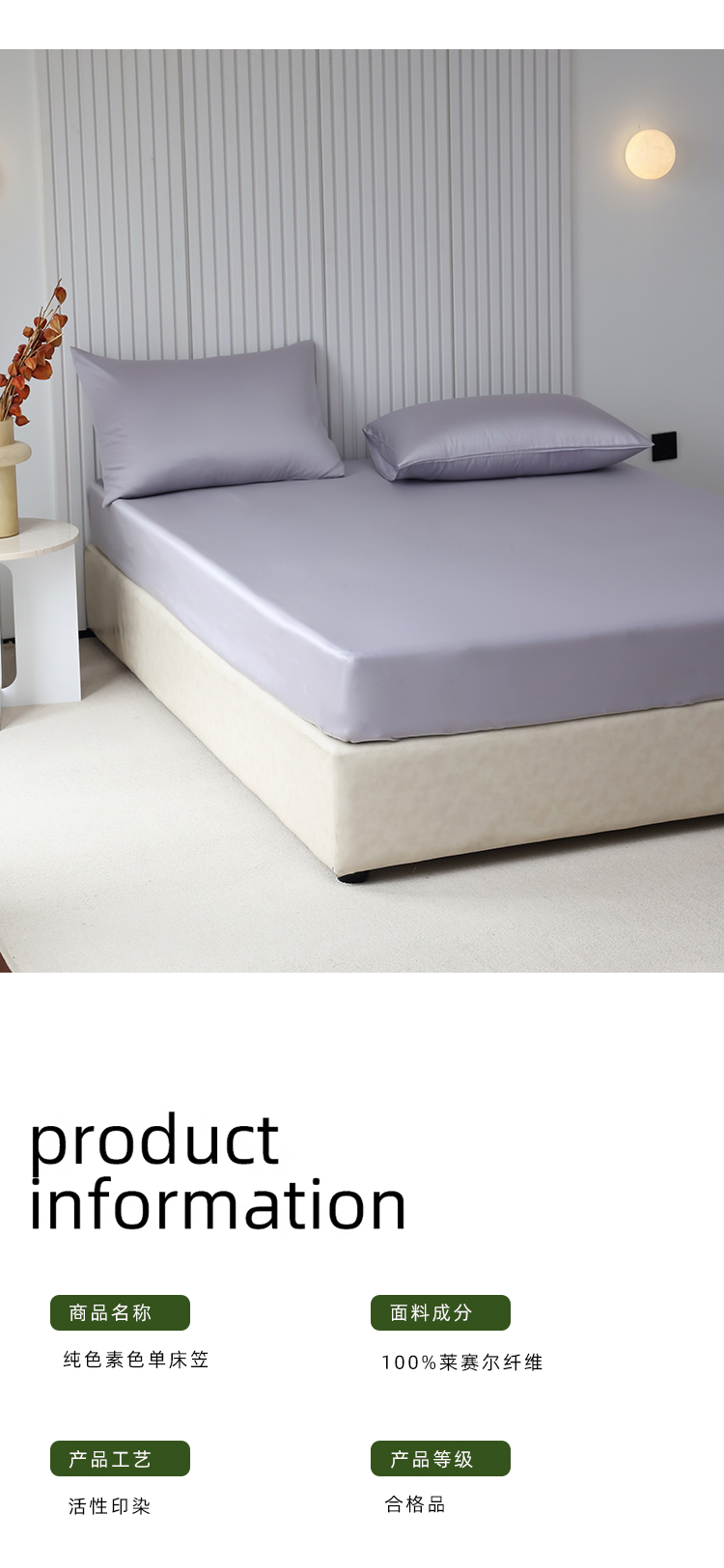 商品名称:Mr.pig猪先生水洗棉 2024新款60天丝莱赛尔纤维四件套系列-单床笠 气质灰