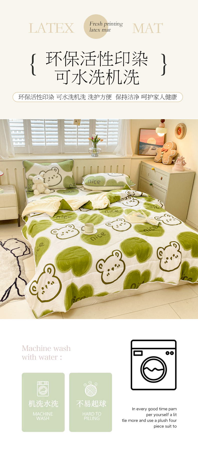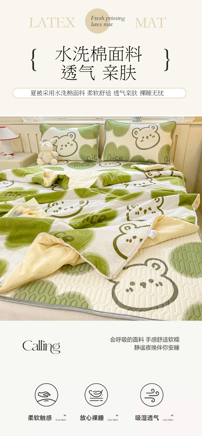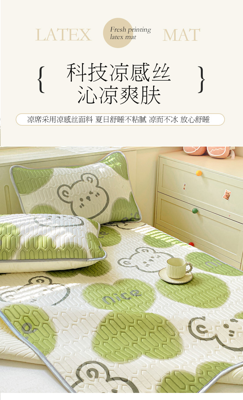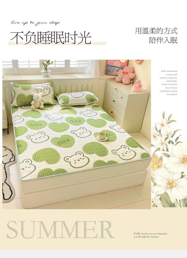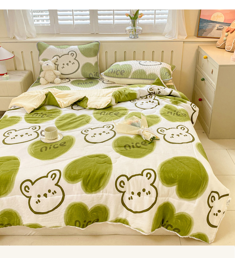 当前位置: 91家纺网 > 商品网购 > 床品套件 > 四件套 > 夏被四件套 > 寐居家纺 2024新款时尚印花凉感丝乳胶凉席小花边夏被四件套系列 森系熊