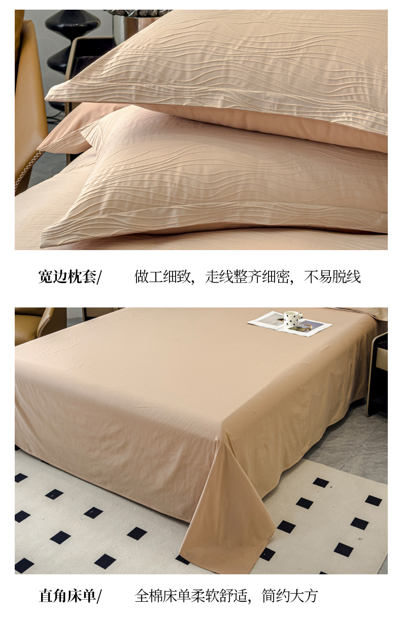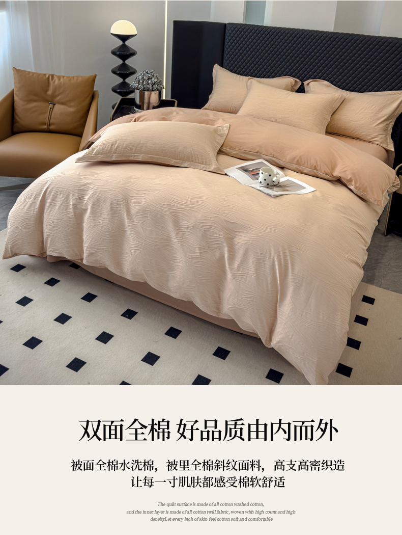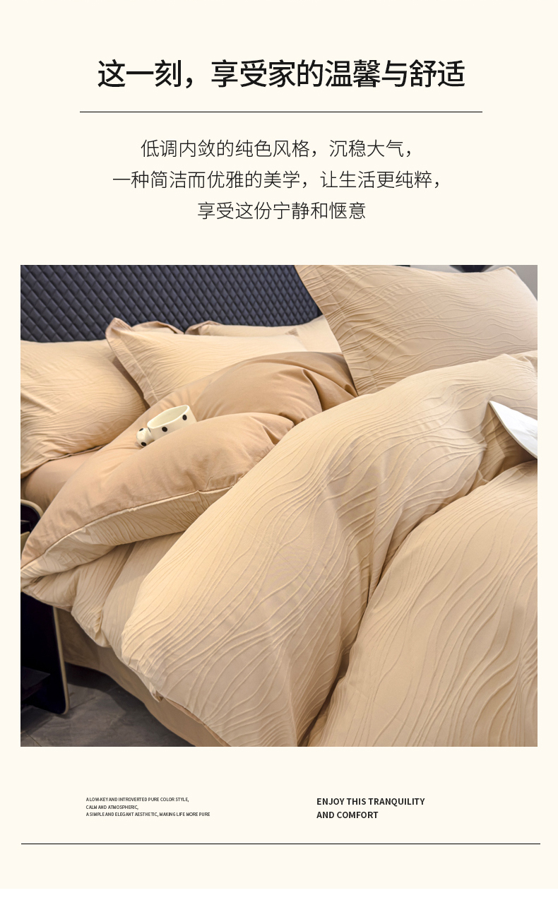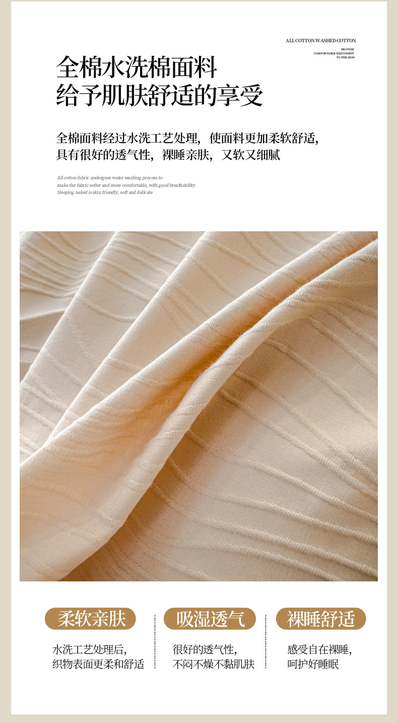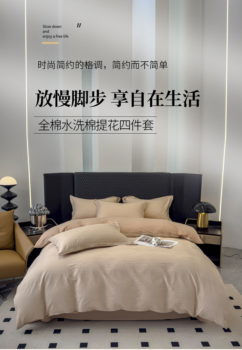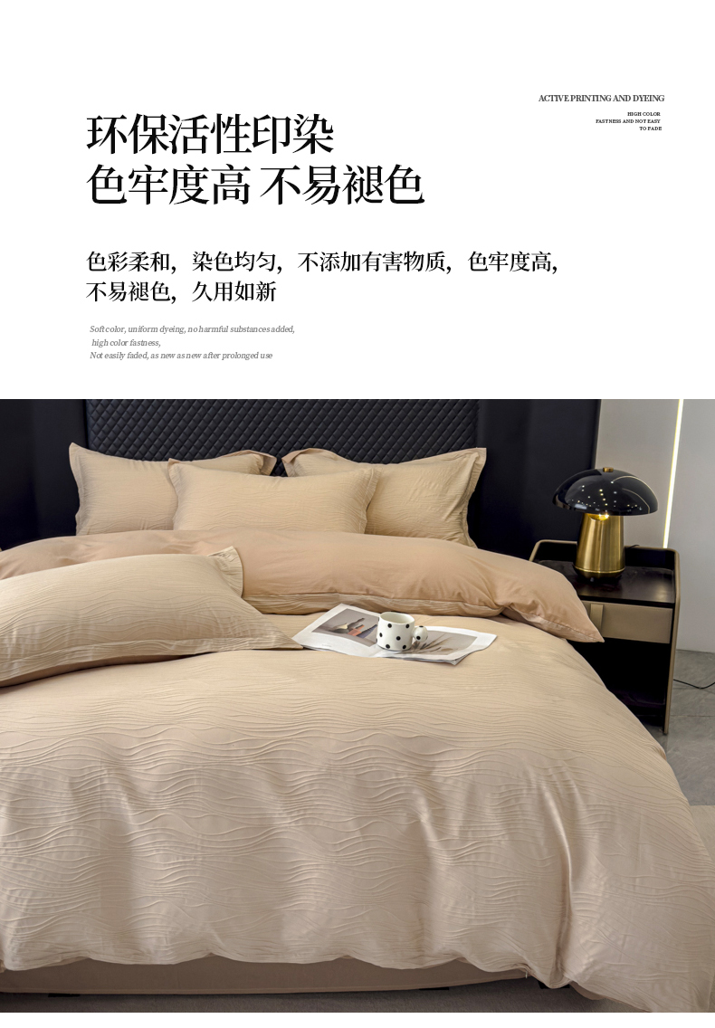 商品名称:金丝鸟家纺 2024新款全棉水洗棉提花四件套 水漾 驼色