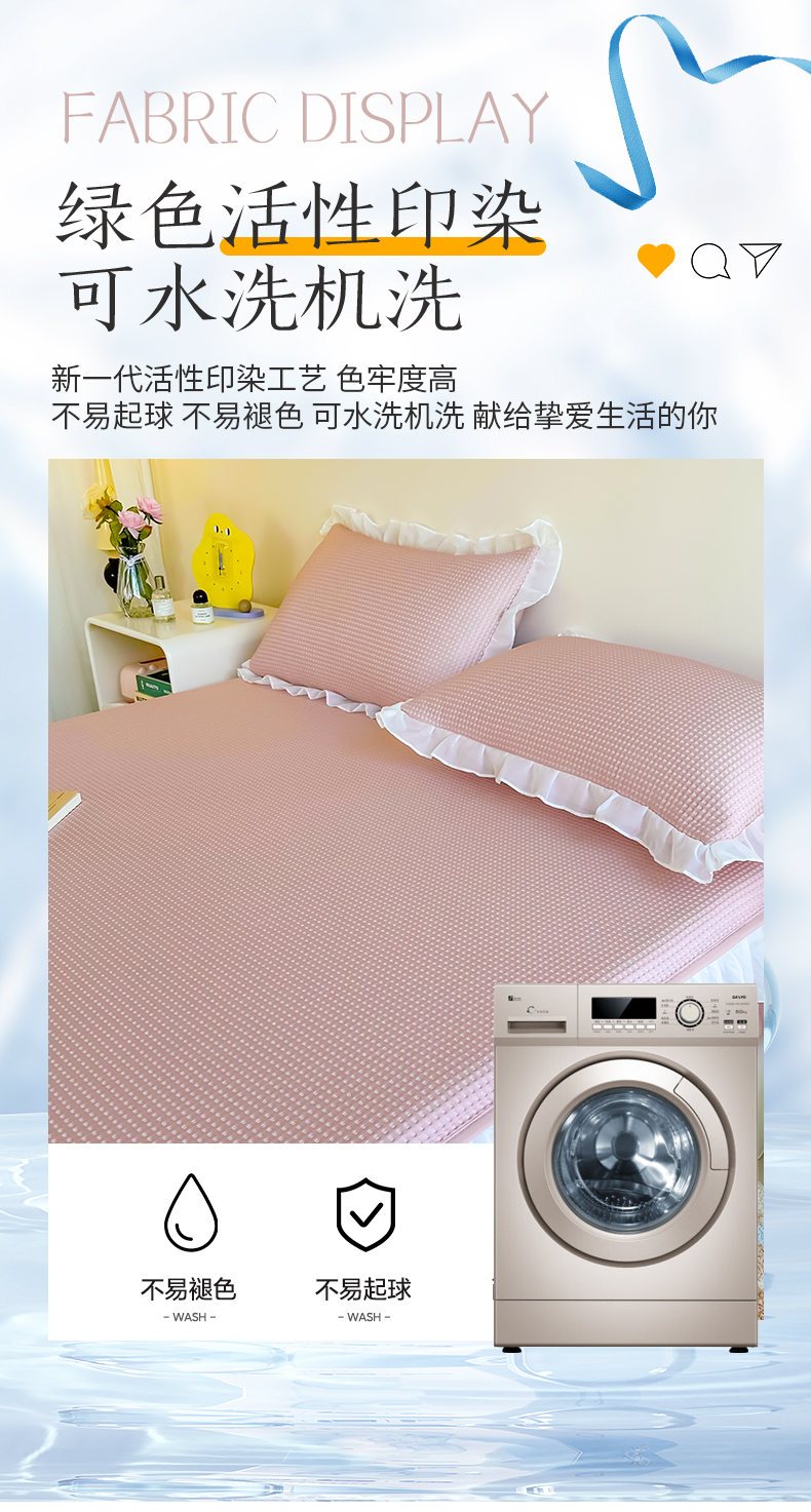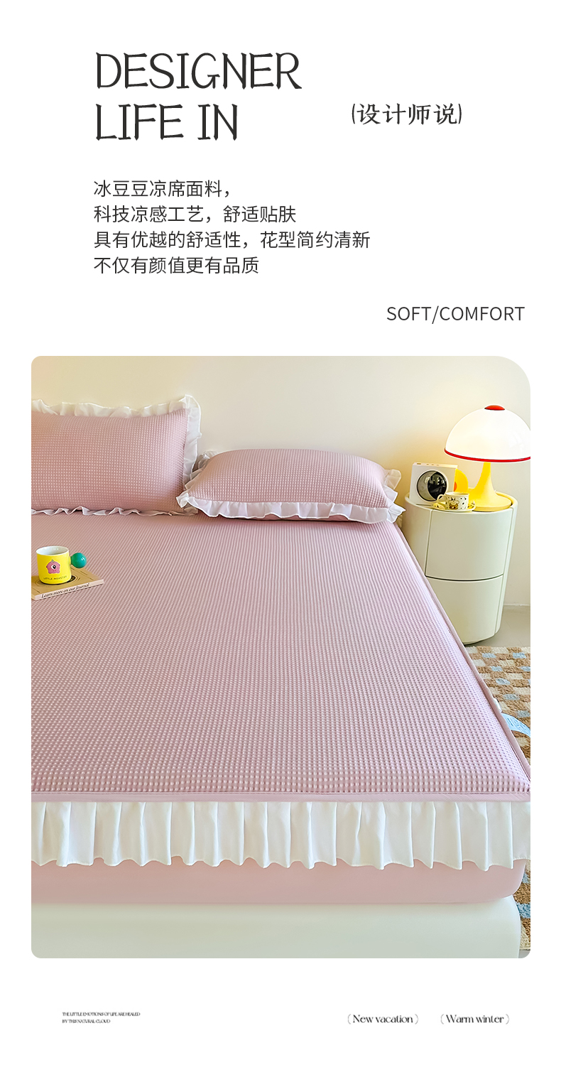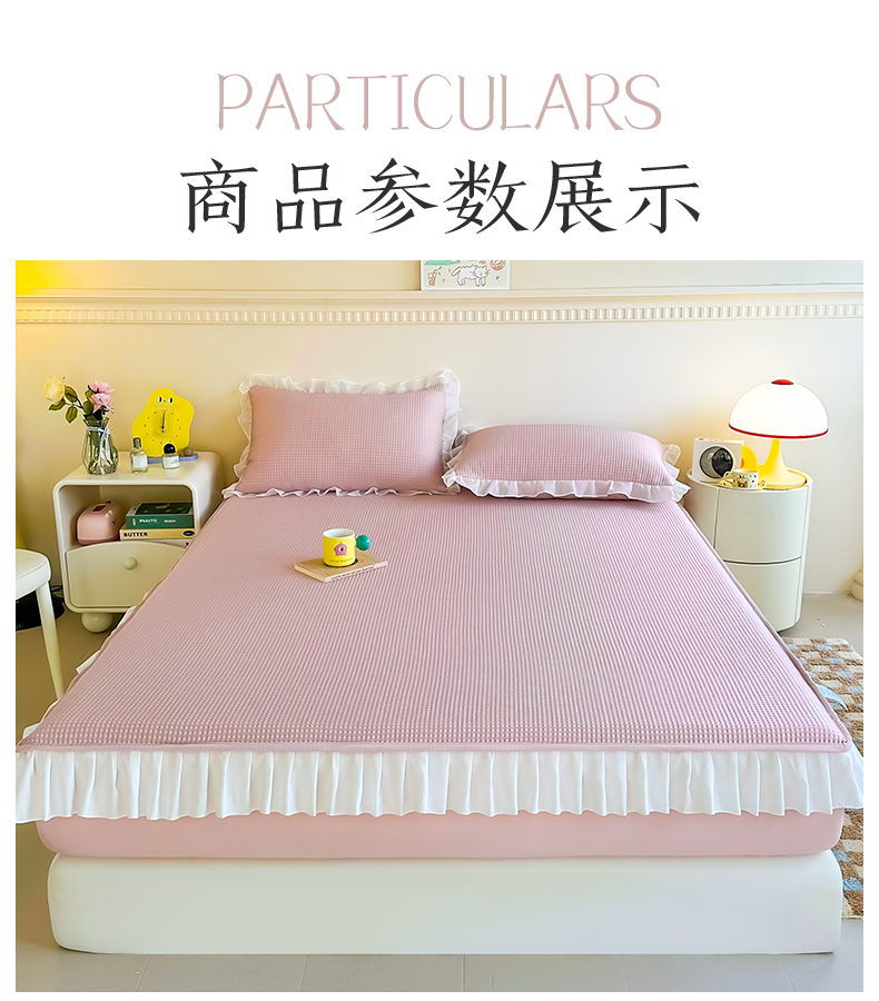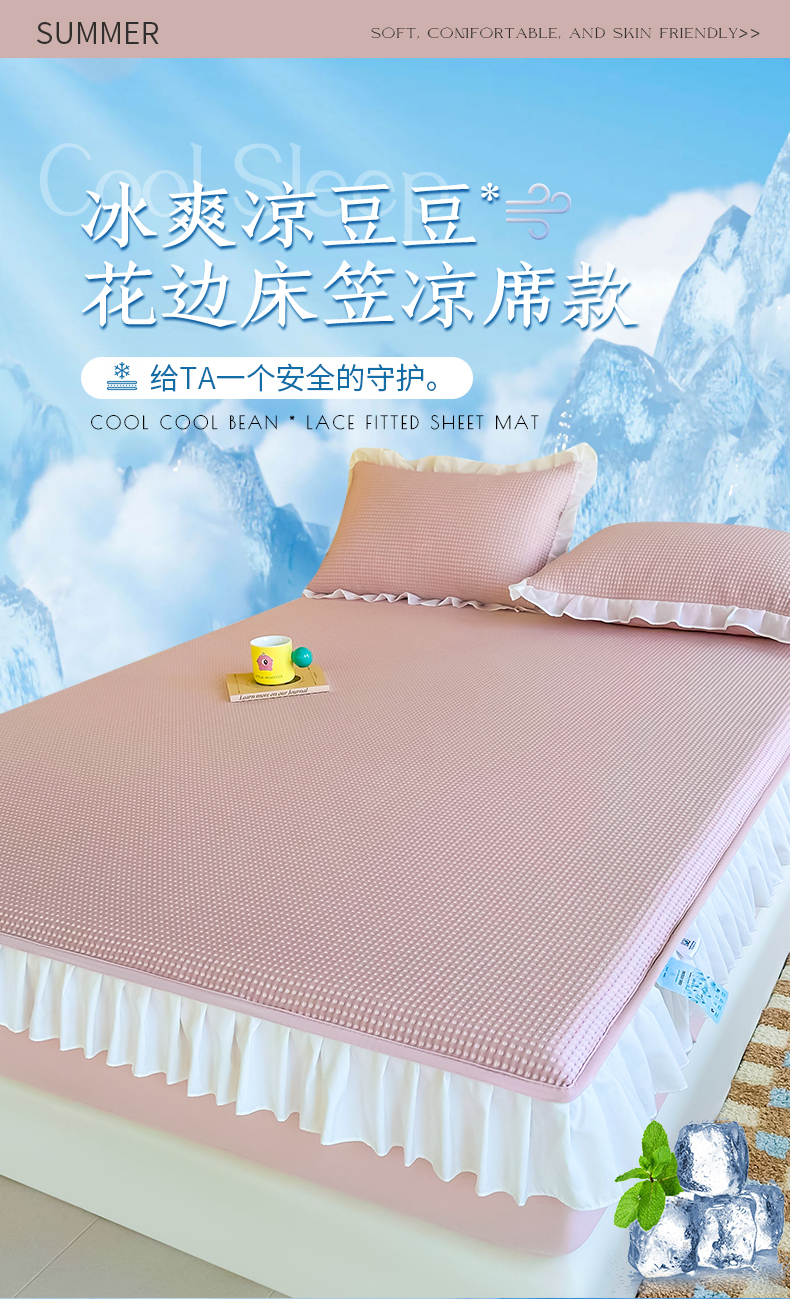 商品名称:屹成家纺 2024新款PE高分子凉豆豆冰丝凉席床笠款 华夫格-粉色
