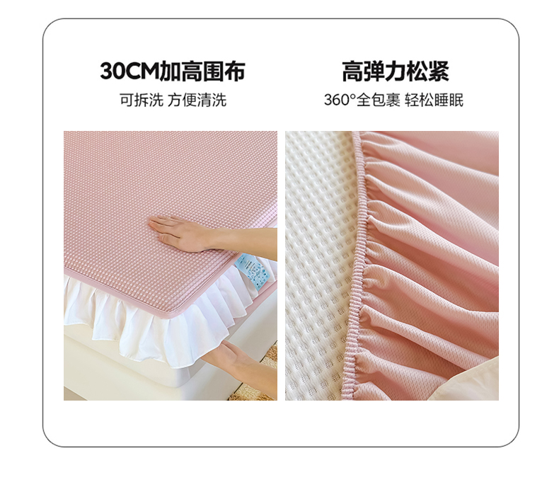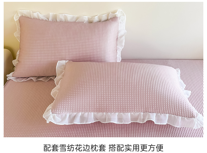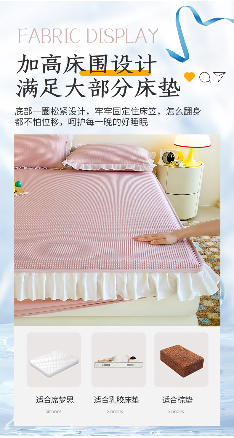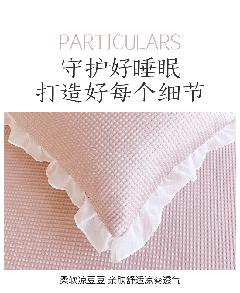 商品名称:屹成家纺 2024新款PE高分子凉豆豆冰丝凉席床笠款 华夫格-粉色