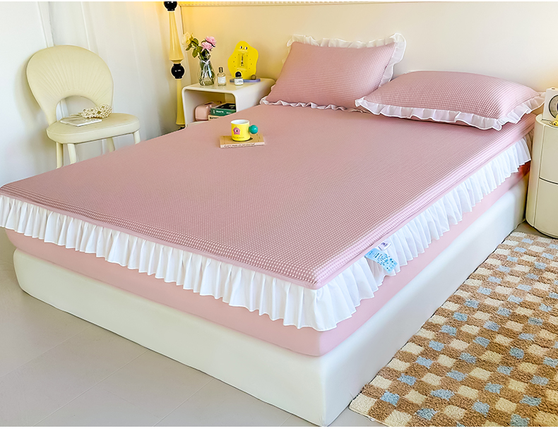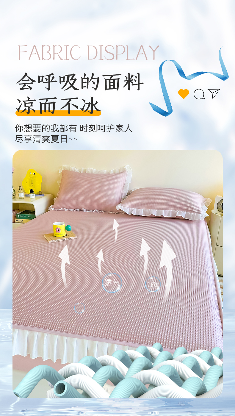 屹成家纺 2024新款PE高分子凉豆豆冰丝凉席床笠款 华夫格-粉色