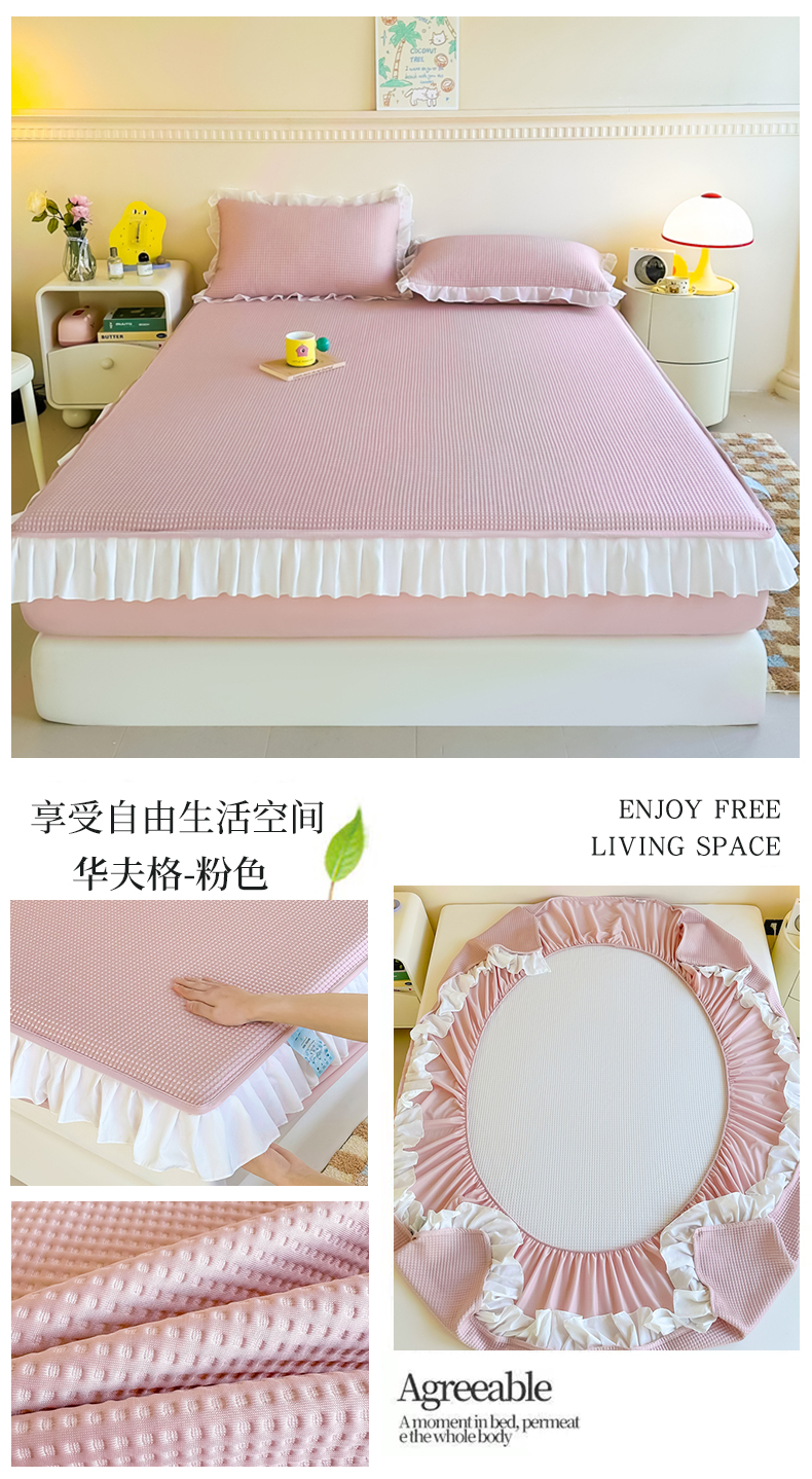 (总)屹成 2024新款水洗棉蕾丝四季款床笠床裙单品套件-床裙三件套,粉玉,豆沙,粉红,大红,橄榄绿,卡其,玫红,浅紫,水绿,天蓝,银灰