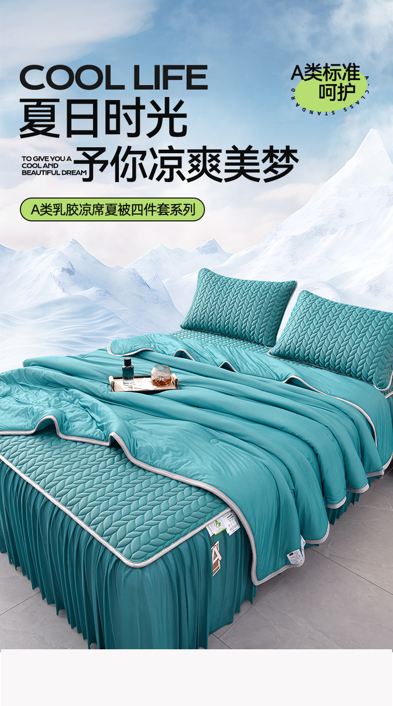 (总)布卢姆床垫 2025新款A类5mm纯色乳胶凉席床裙梦田系列夏被凉席四件套